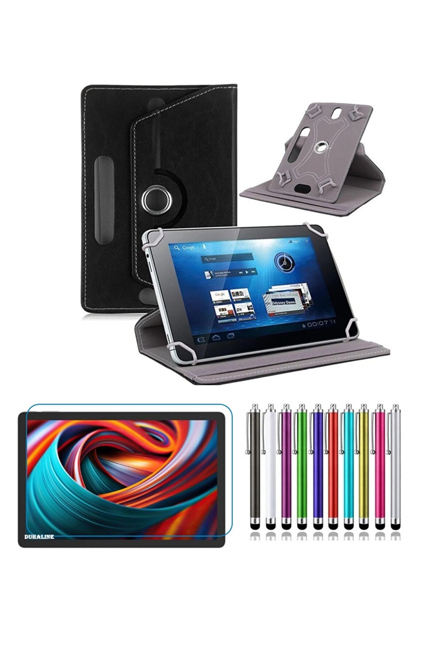 DÖNER STANTLI TABLET KILIFI + NANO KIRILMAZ EKRAN KORUYUCU CAM + DOKUNMATİK KALEM