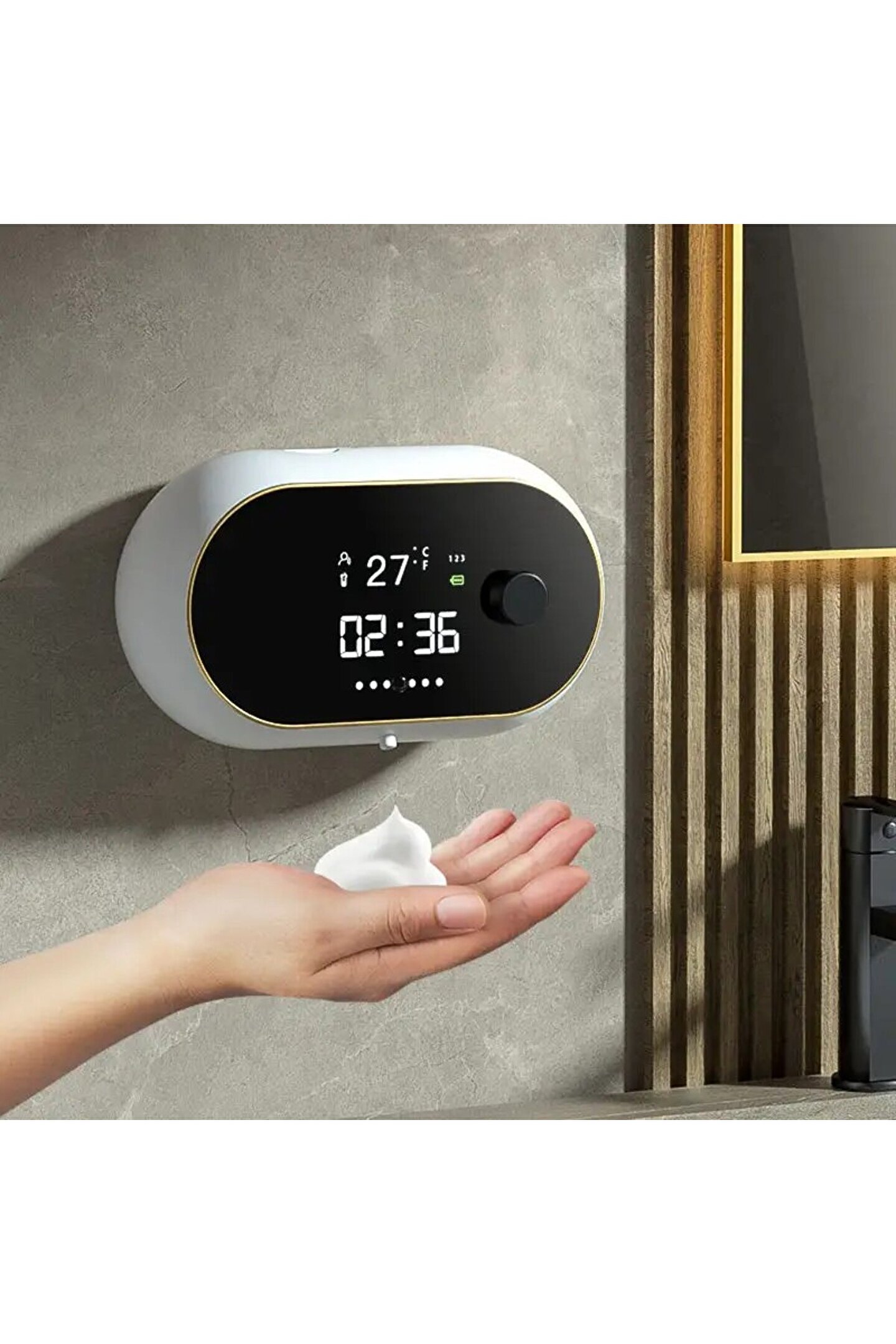Hem fonksiyonel hem de modern bir tasarıma sahip bu otomatiksensörlü köpük sabunluk, dijital ekranı ile kullanım kolaylığı sağlarken hijyenve estetiği bir arada sunuyor. Kullanıcı dostu ekranı, saat ve ortamsıcaklığını göstererek kullanım deneyiminizi daha konforlu hale getirir.