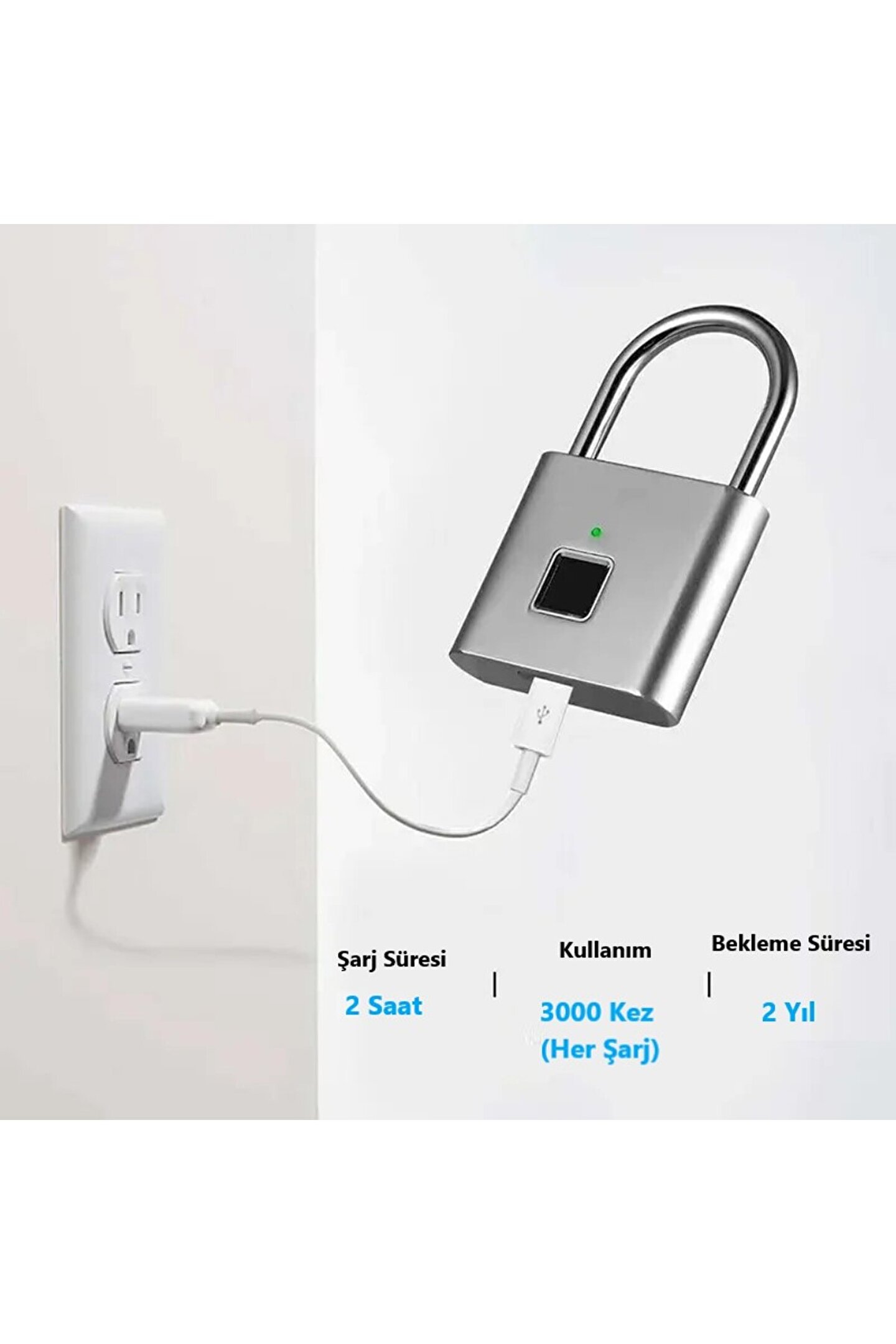 Parmak İzi ile Çalışan Şarjlı Asma Kilit Akıllı ve Güvenli Kilitleme Çözümü Su Geçirmez Anahtarsız