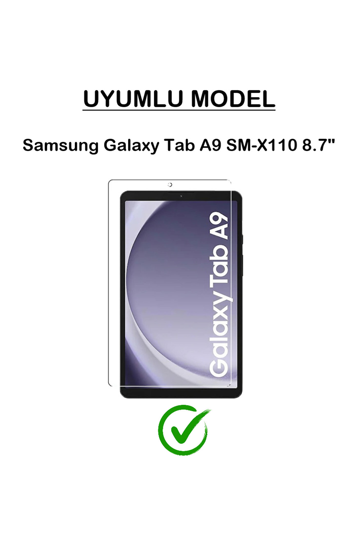Samsung Galaxy Tab A9 SM; X110 modeli ile tam uyumlu, cihazınızı darbelere ve çizilmelere karşı koruyan kapaklı kılıf tasarımı; Tablet ekranınızı çizilmelere ve darbelere karşı koruyan, dayanıklılığı artıran kırılmaz ekran koruyucu ile birlikte gelir; Dokunmatik kalemi sayesinde tabletinizi kullanırken ekstra rahatlık ve hassasiyet sağlar;