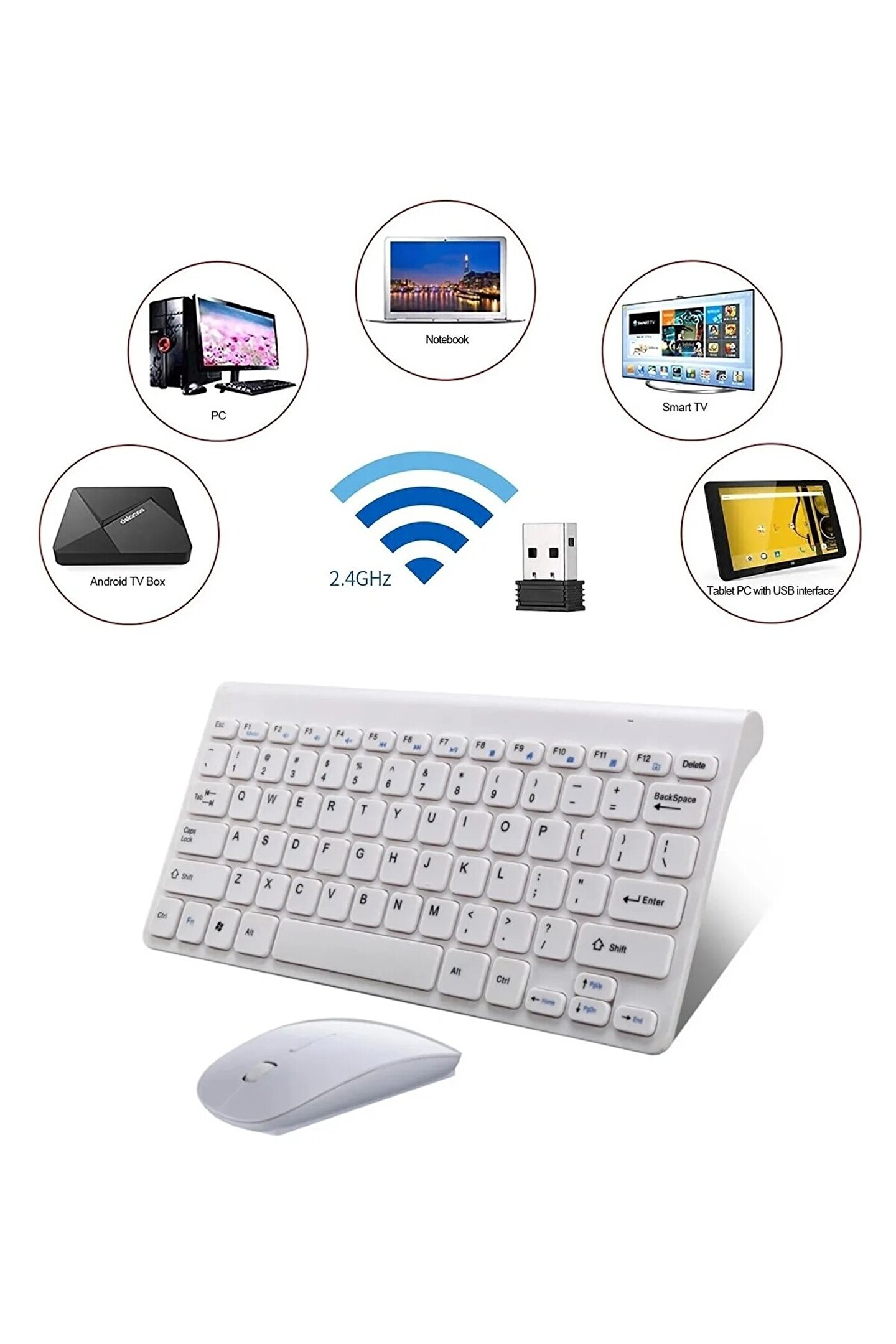 Samsung Galaxy Tab S9 Ultra Tablet Uyumlu Kablosuz Taşınabilir Q Klavye Ve Mouse Set BEYAZ Mini 2.4 GHz Kablosuz Q Klavye Mouse Set Klavye Tüm marka ve model bilgisayar, dizüstü bilgisayar ve tabletler ile uyumludur. ; Ultra ince slim tasarım ile dayanıklı malzemeden yapılmıştır, sessiz tuşlar rahat bir kullanım sağlar. ; Mouse simetrisi ve ergonomisi tasarımı ile elleriniz için mükemmel uyum sağlar. ; Uzaktan kablosuz 10 metreye kadar rahatça kullanabilirsiniz. ; Akıllı güç tasarrufu ile kullanılmadığı zaman otomatik uyku moduna geçer. ; Ek bir yazılım yüklemeden hem klavye hem de fare için bir tane USB alıcı ile bağlantı sağlanır. ; Ayarlanabilir DPI ile mouse 3 hassasiyet seviyesi (800/1200/1600) Pil modeli 4 Adet AAA pil (pakete dahil değildir) Malzeme : ABS Plastik Klavye boyutu: 284/134/18mm Mouse boyutu: 59/113/20mm Paket İçeriği 1 * Kablosuz Klavye 1 * Kablosuz Mouse 1 * USB Alıcı 1*OTG Adaptör;