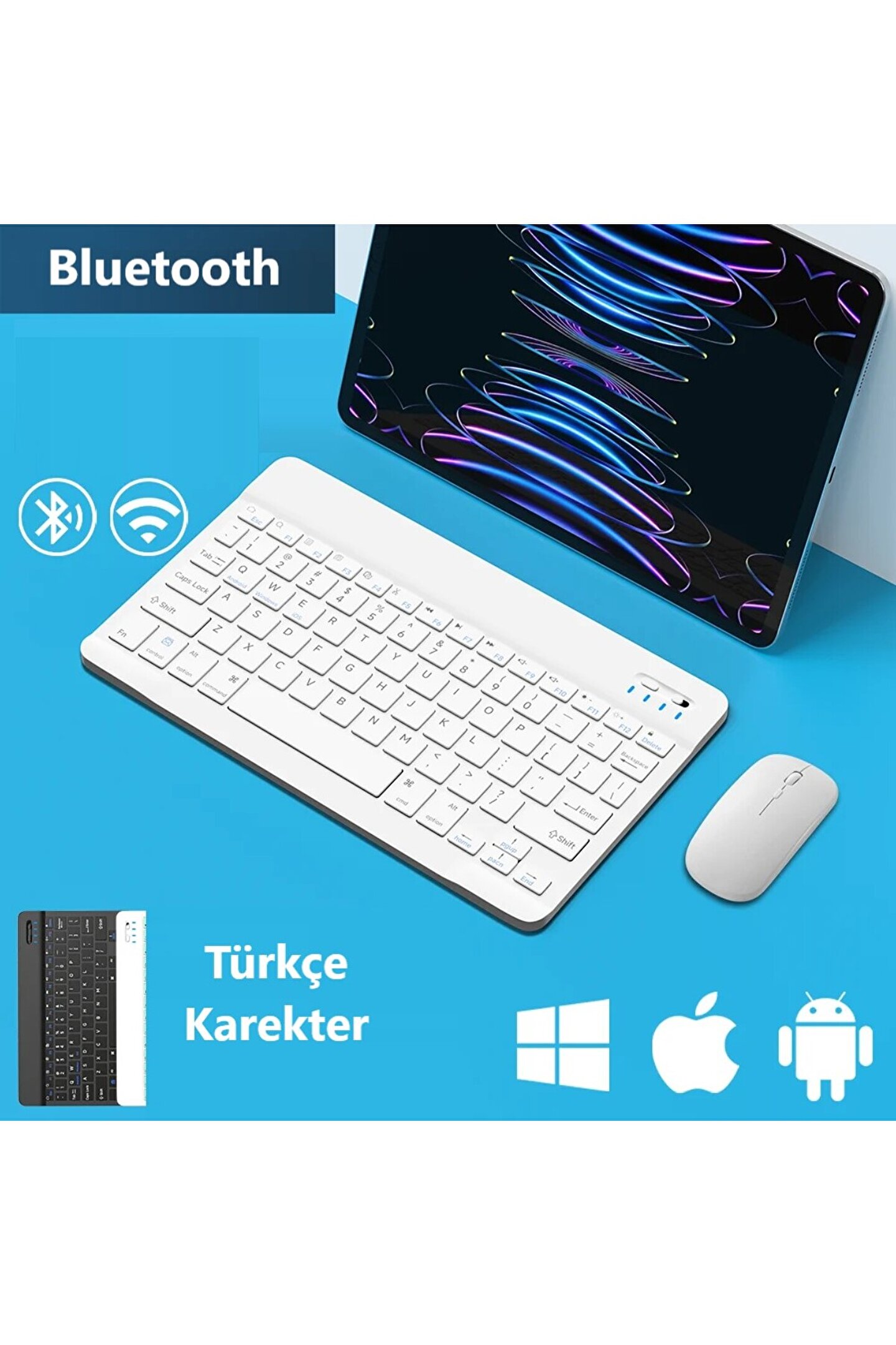 2 yıl ithalatçı garantisi ile güvenli kullanım sunar, olası teknik sorunlarda endişe etmenize gerek kalmaz; Bluetooth bağlantısı sayesinde kablosuz özgürlük sağlar, kablo karmaşasına son verir ve çalışma alanınızı düzenler; Türkçe Q klavye düzeni ile rahat yazım deneyimi yaşatır, dilimize özgü karakterler için özel tuşlara sahiptir; Multimedya tuşları bulunur, müzik ve video gibi medya içeriklerinizi kolayca kontrol edebilirsiniz; Slim tasarımı sayesinde tabletinize şık bir görünüm kazandırırken, şarjlı yapısıyla ekstra bir güç kaynağı olarak da işlev görür;