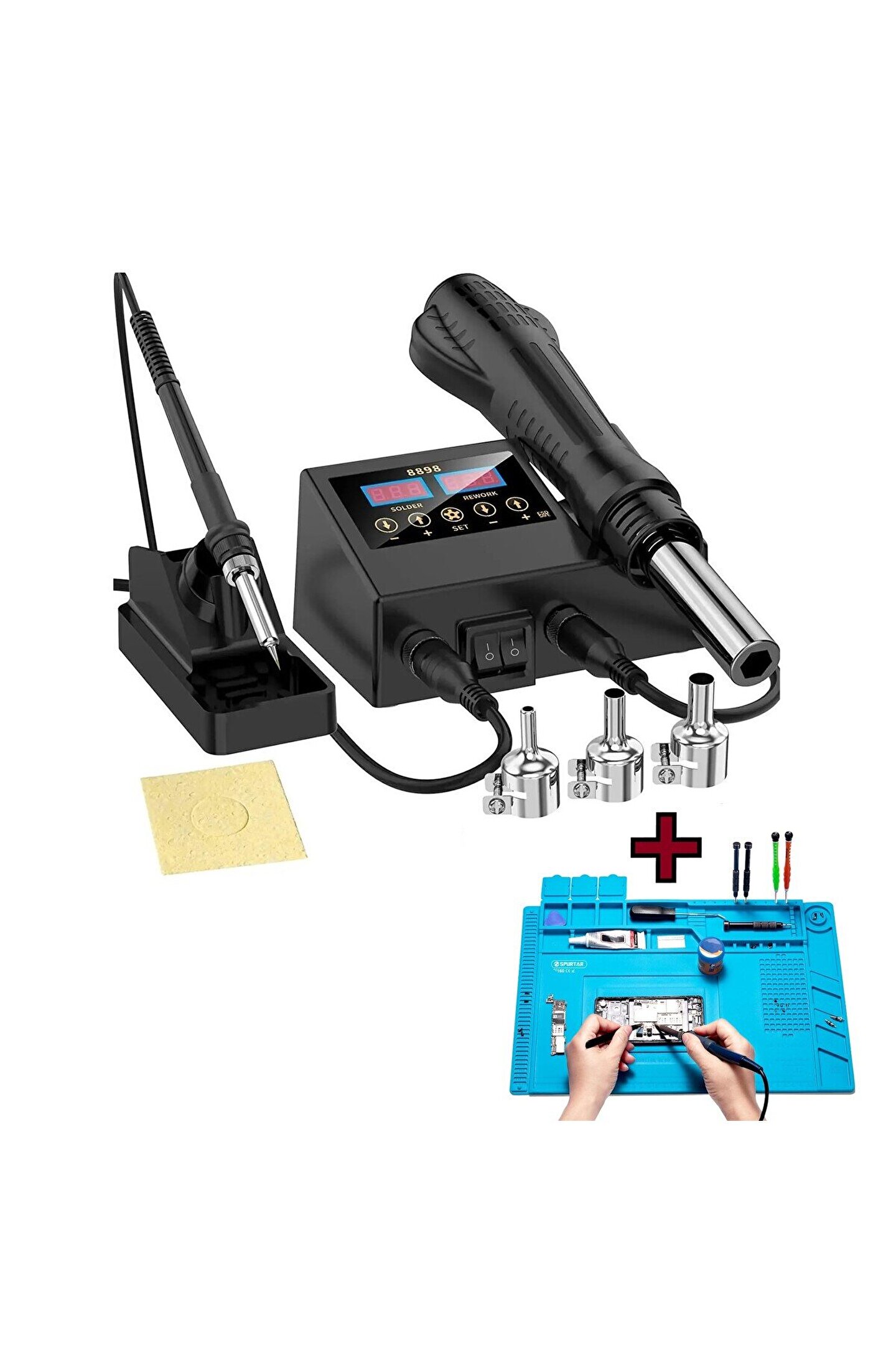 Sıcak Hava Üflemeli Havya İstasyonu Dijital Ekran Lehim Maknesi ve Hava Tabancası +Tamir Matı HEDİYE