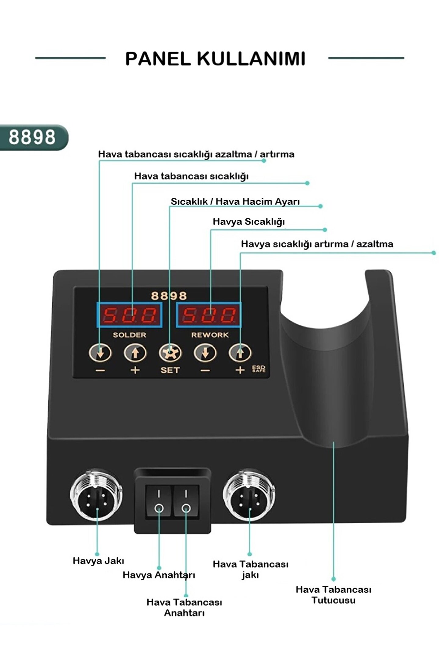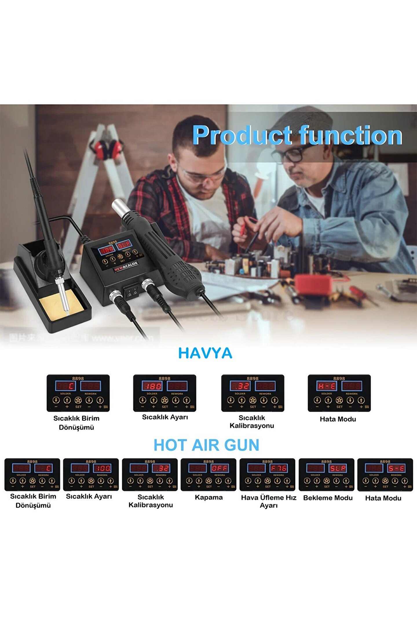 Sıcak Hava Üflemeli Havya İstasyonu Dijital Ekran 2in1 LehimMakinesi ve Hava Tabancası + TAMİR MATI