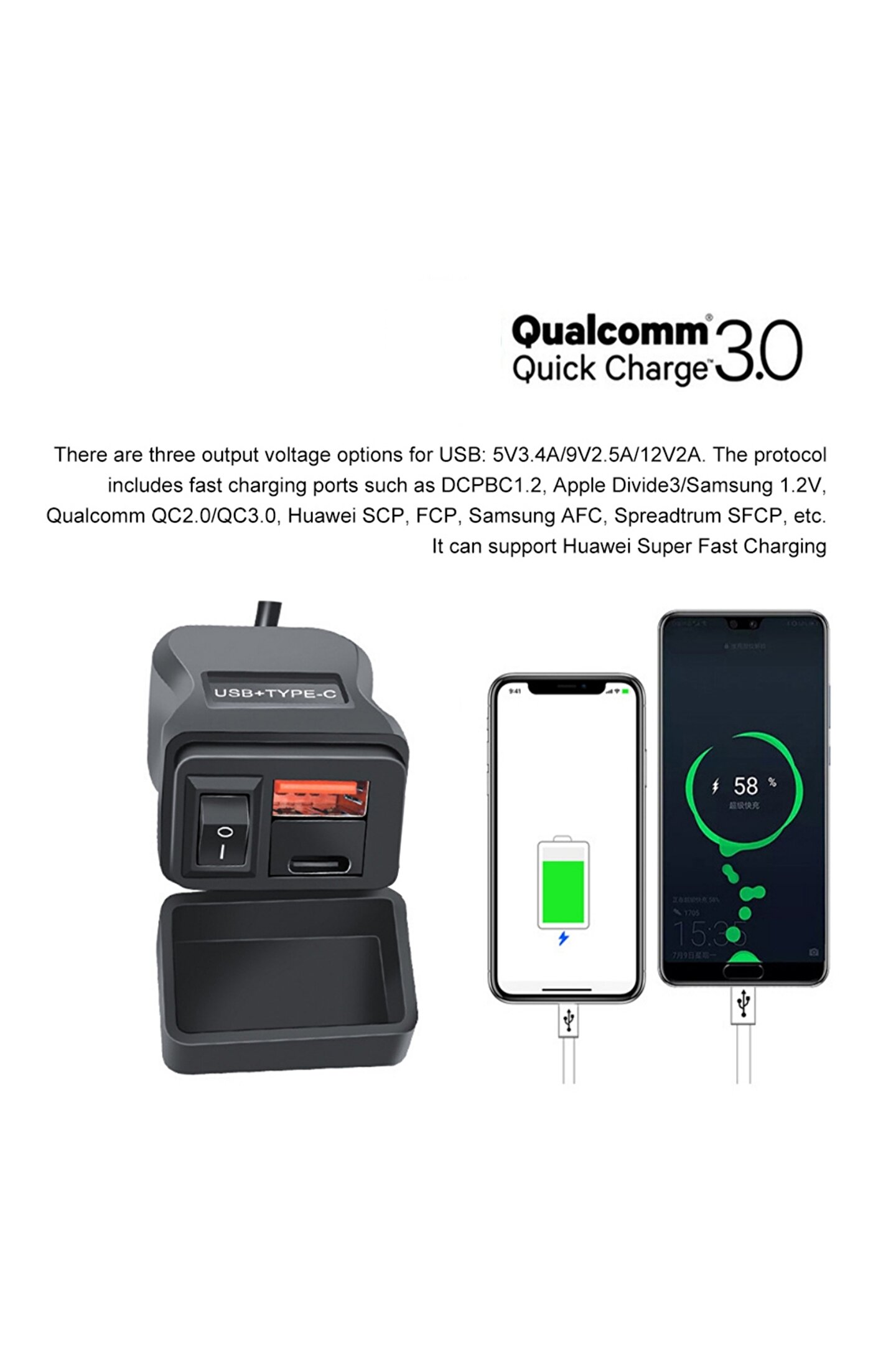 Motosiklet, Scooter, Karavan ve Tekne Uyumlu Hızlı Şarj Portu - Su Geçirmez Kapaklı & Akü Koruma Şalterli
