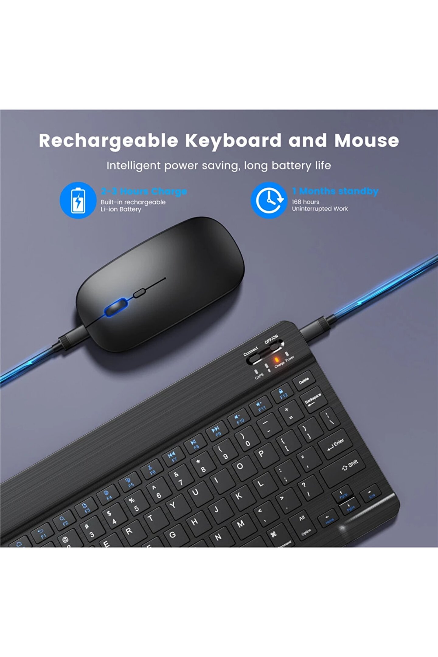 DUHALINE Windows 10 Tablet Için Uyumlu Slim Şarjlı Bluetooth Klavye Ve Mouse Seti