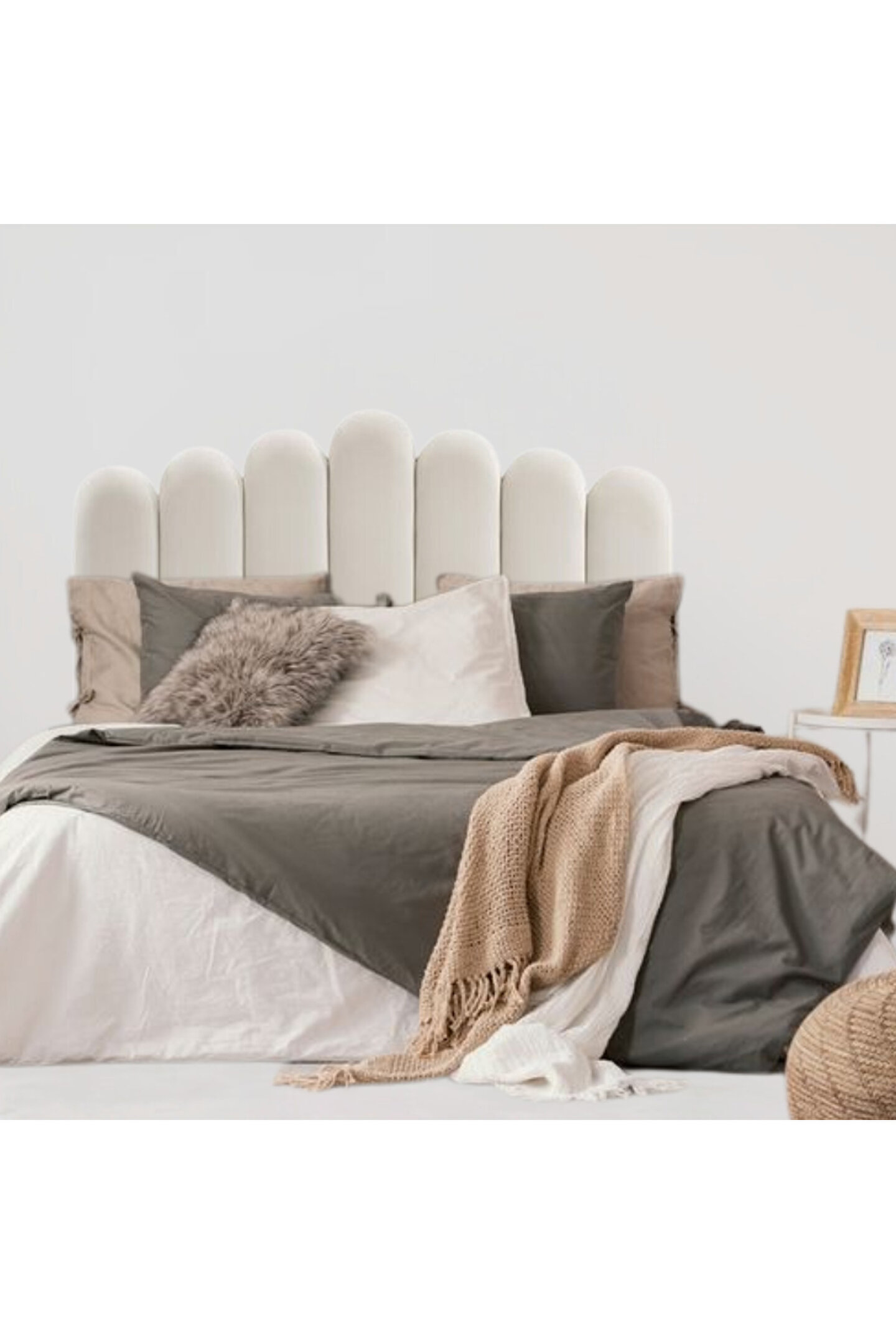 Oval üst kısımlı Yatak başlığı fayansları-Çocuk, Ergen, Genç, Yetişkin yatak odaları için dekoratif döşemeli duvar panelleri.