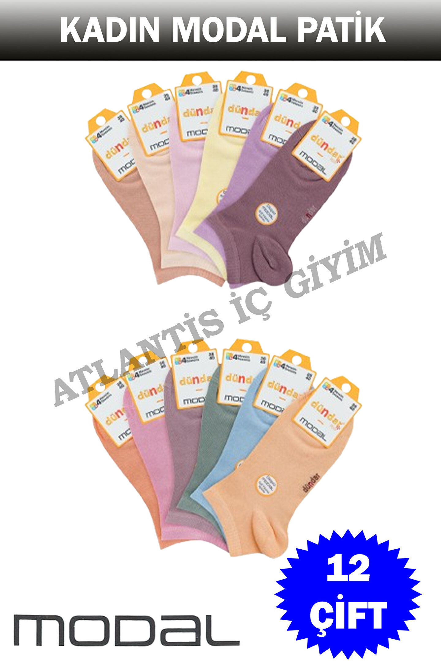 Dündar KADIN MODAL PATİK ÇORAP 12Lİ ASORTİ 4506
