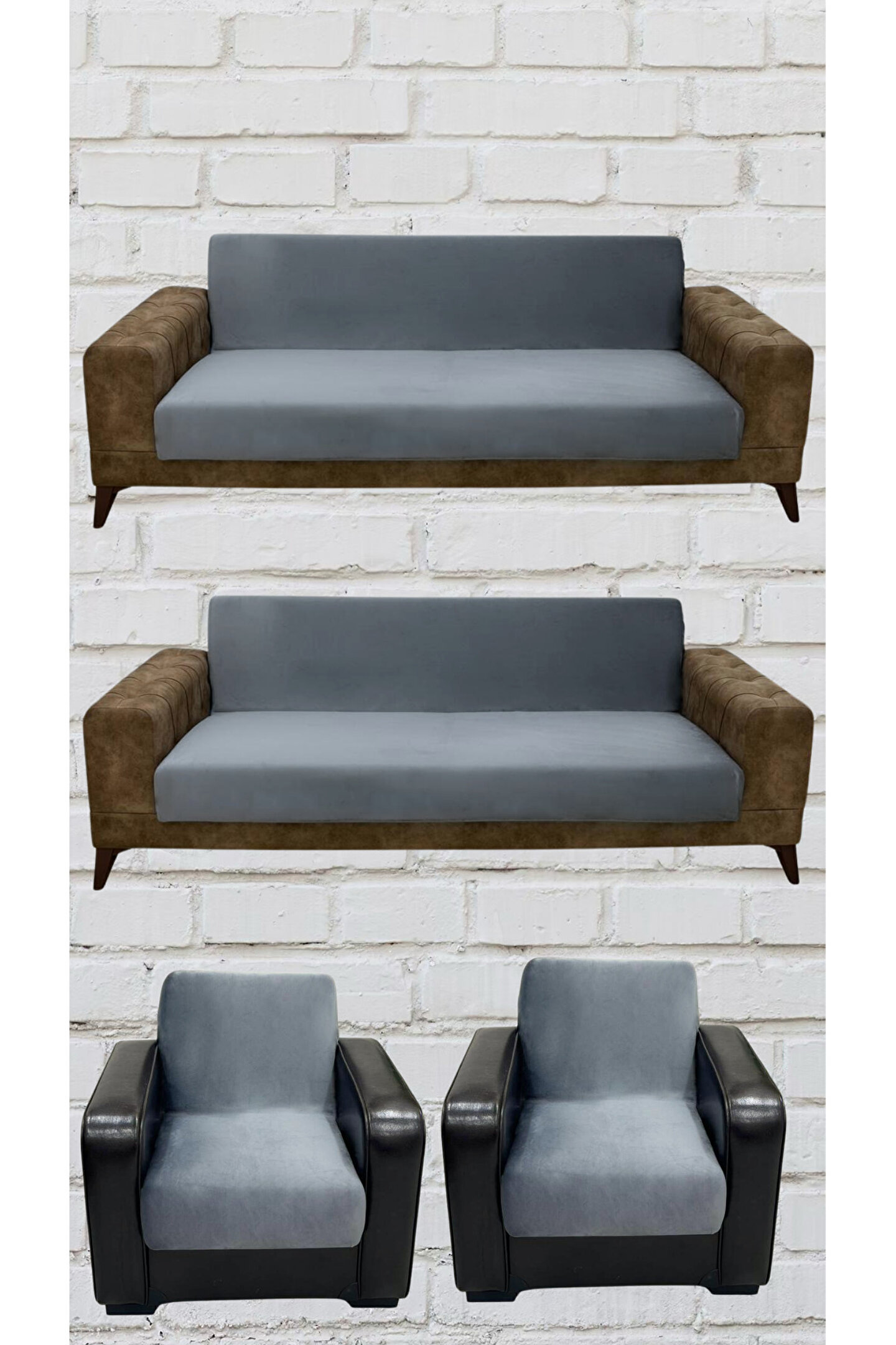 Duru Home Tekstil 3+3+1+1 İtalyan Süet Kolsuz Koltuk Örtüsü (KOYU GRİ RENK)