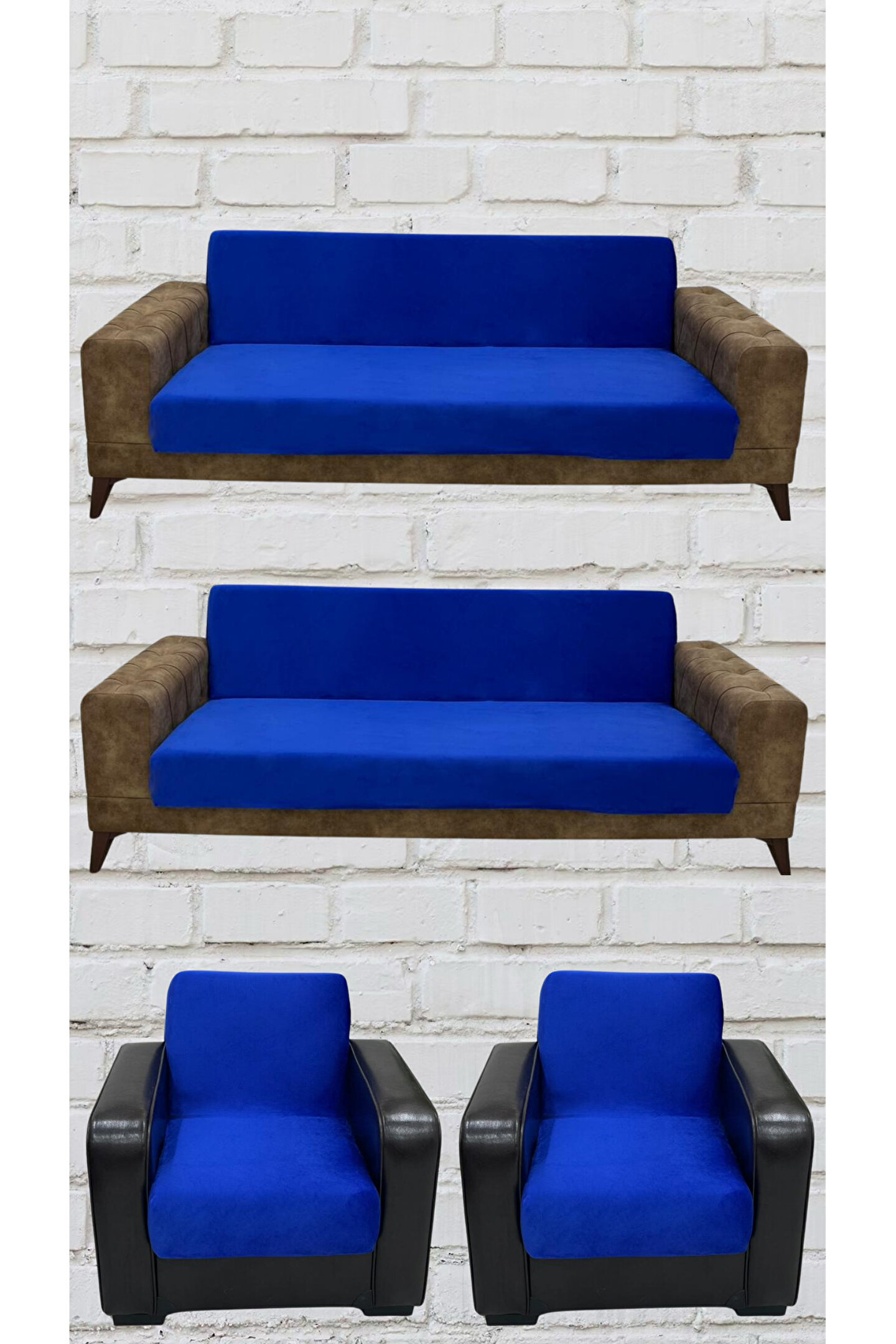 Duru Home Tekstil 3+3+1+1 İtalyan Süet Kolsuz Koltuk Örtüsü ( saks RENK)