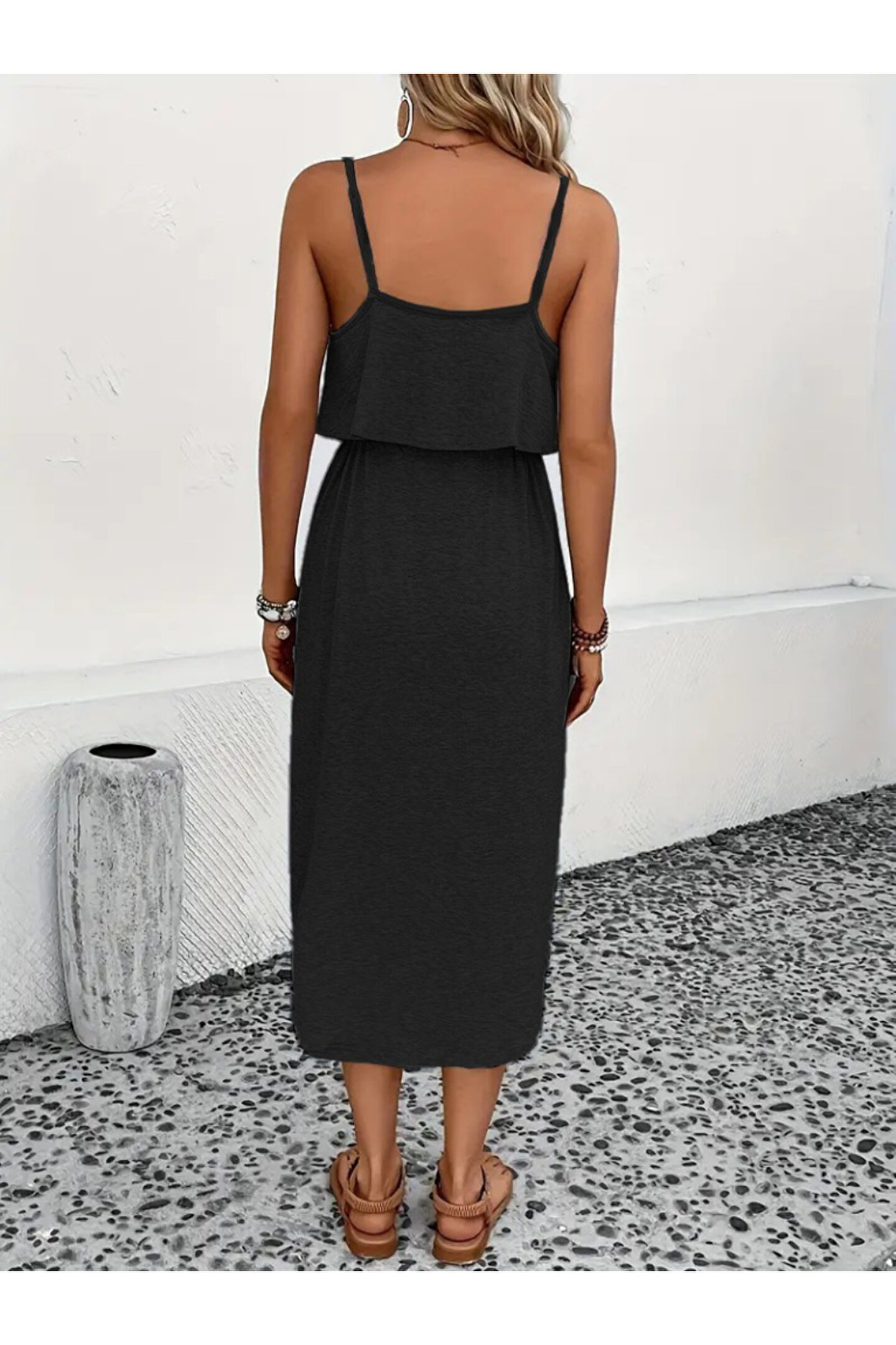 EDA COLLECTION Kadın Askılı V Yakalı Viskon Bluz Ve Bağcıklı Etek Ikili Takım