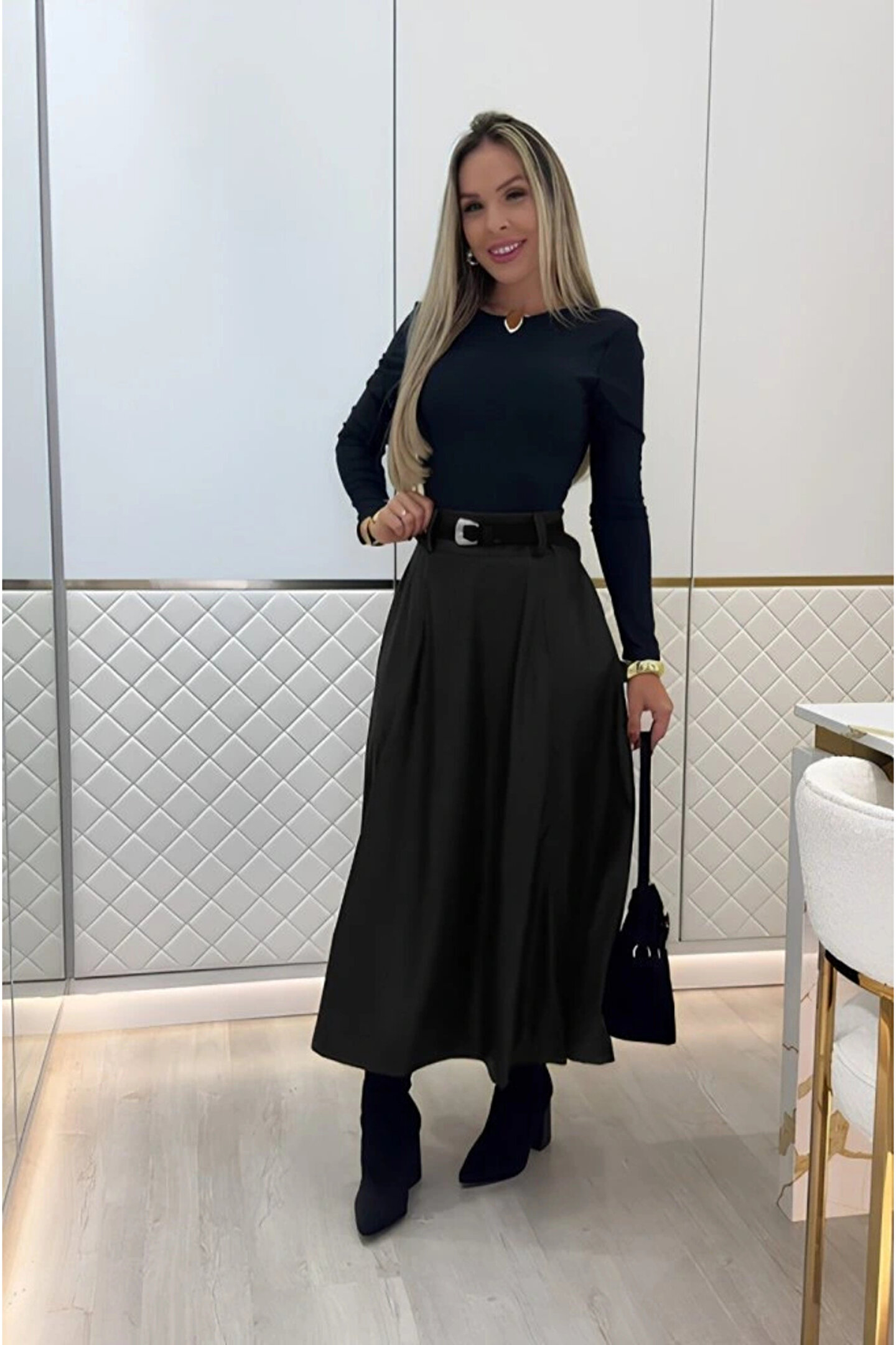 Kadın Yüksek Belli Maxi Deri Kemersiz Etek Stok Kodu: 174482