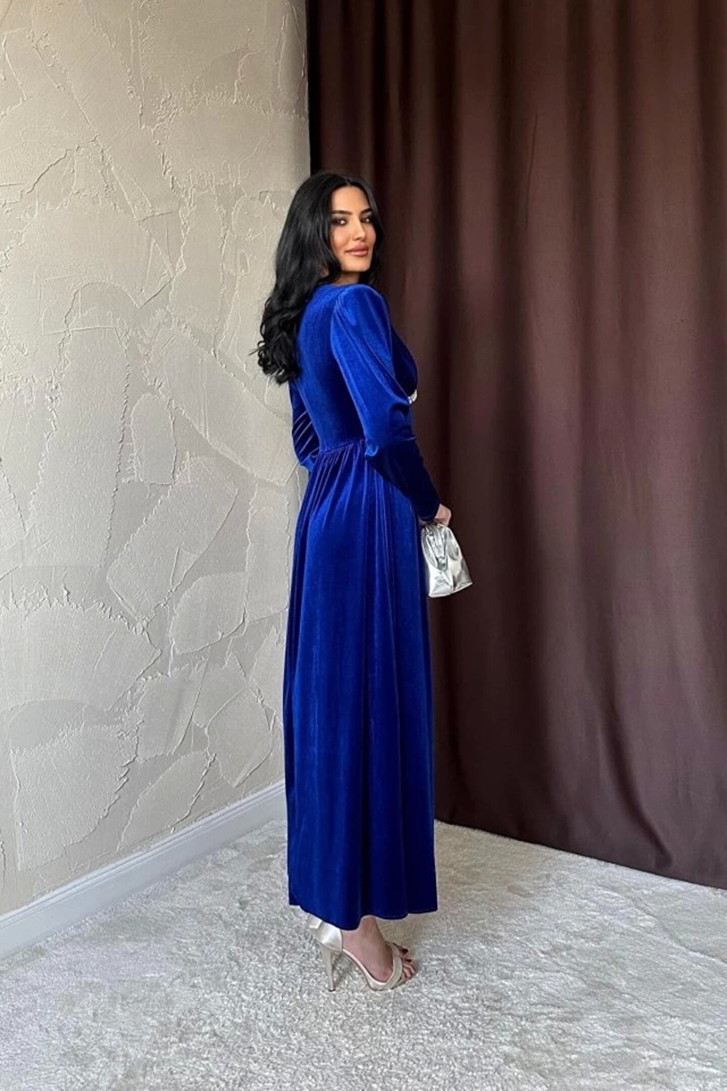 EDAYHomeButik Saks Göğüs Altı Taşlı Elbise