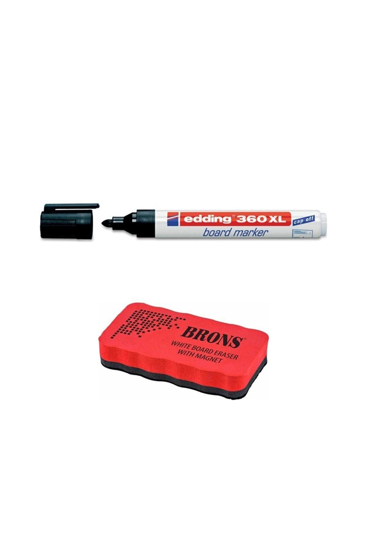 Beyaz Tahta Kalemi Cap Off E-360xl Siyah Ve Mıknatıslı Eva Tahta Silgisi T.s