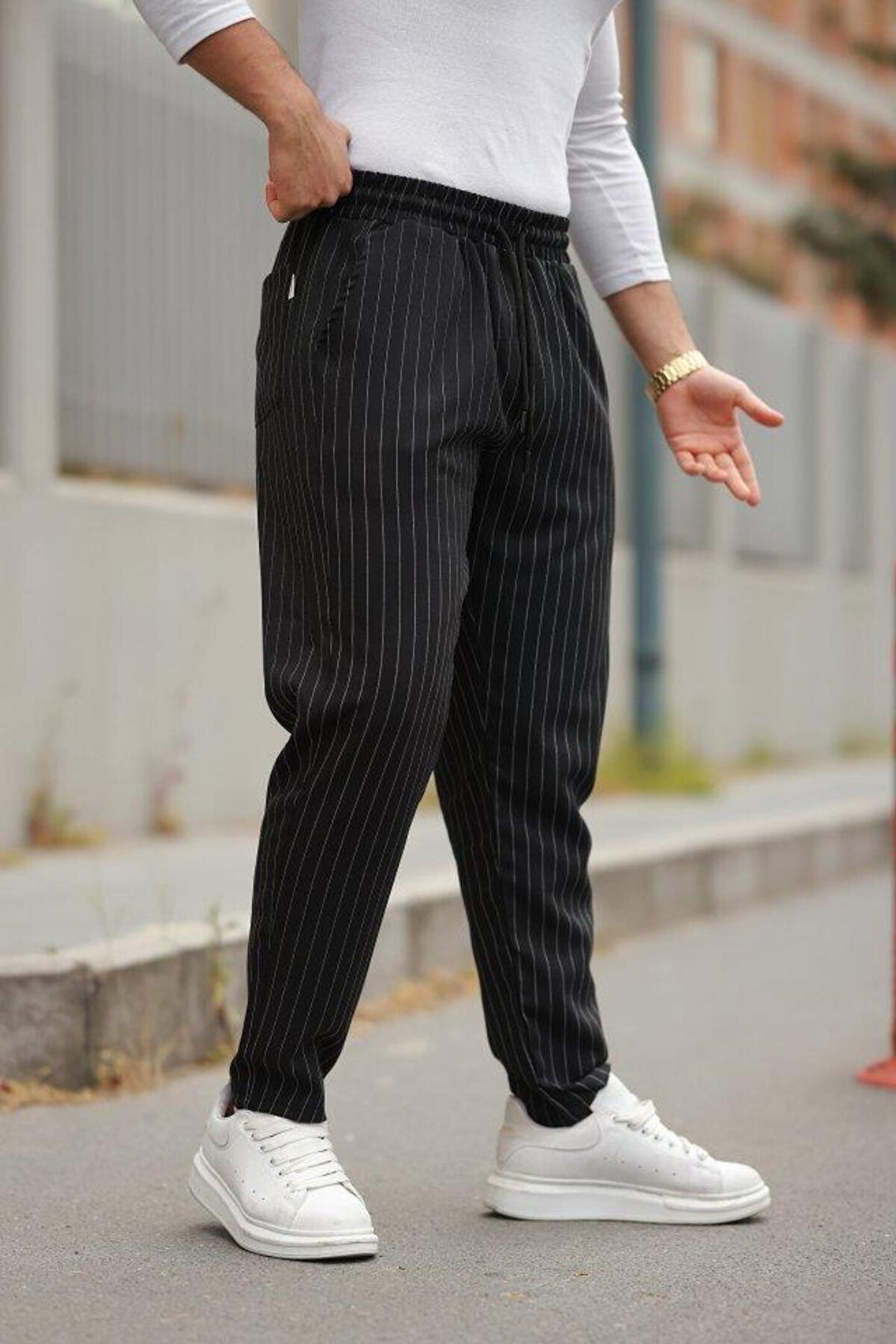 Erkek Beli Bağcıklı çizgili Pantolon