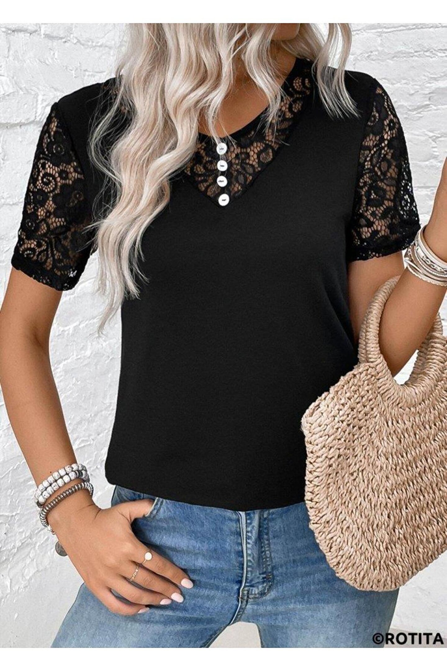 Edolika Kadın Kısa Kollu V Yakalı önden Düğmeli Viskon Bluz