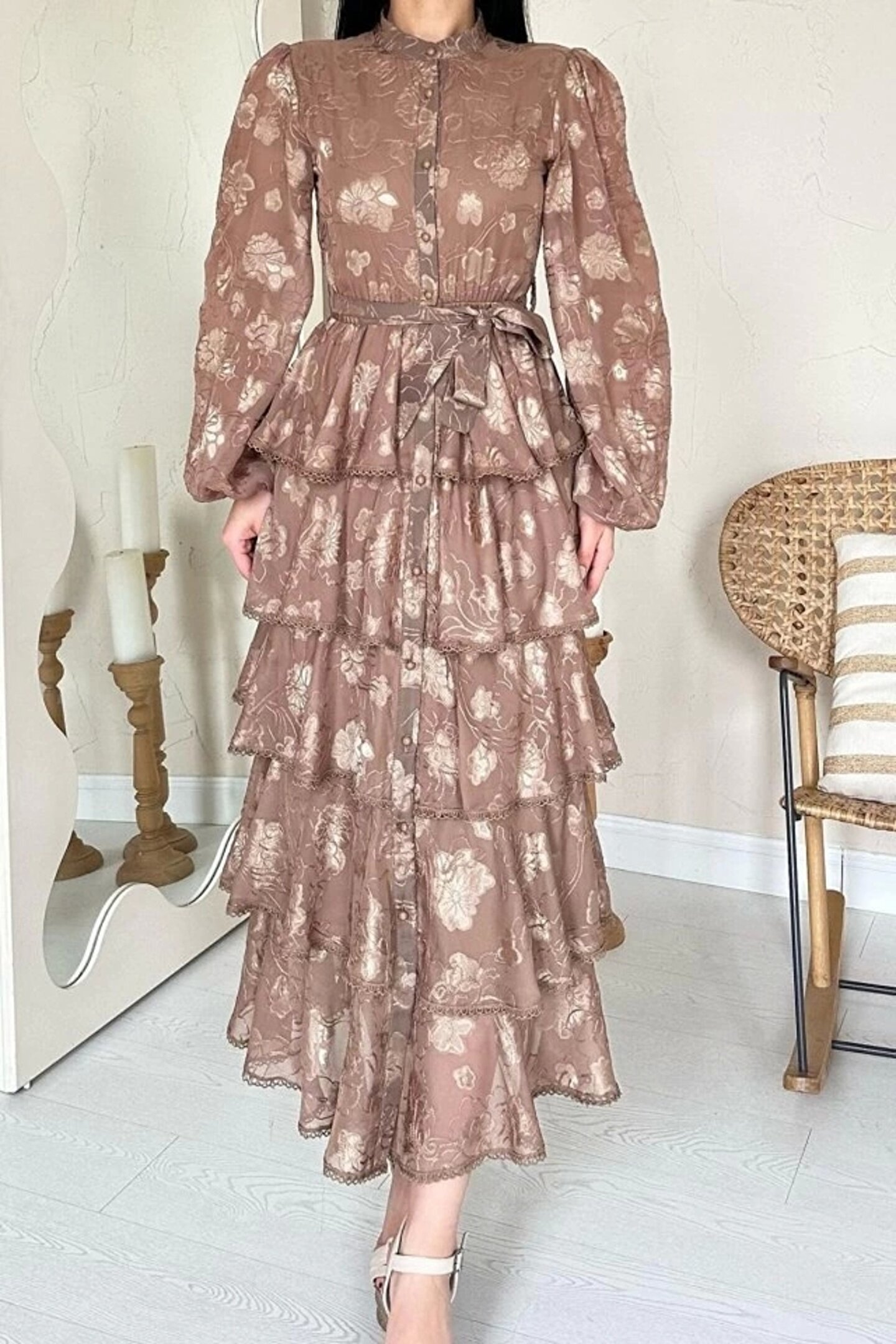 Edolika Vizon Valonlu Şeritli Kat Kat Elbise