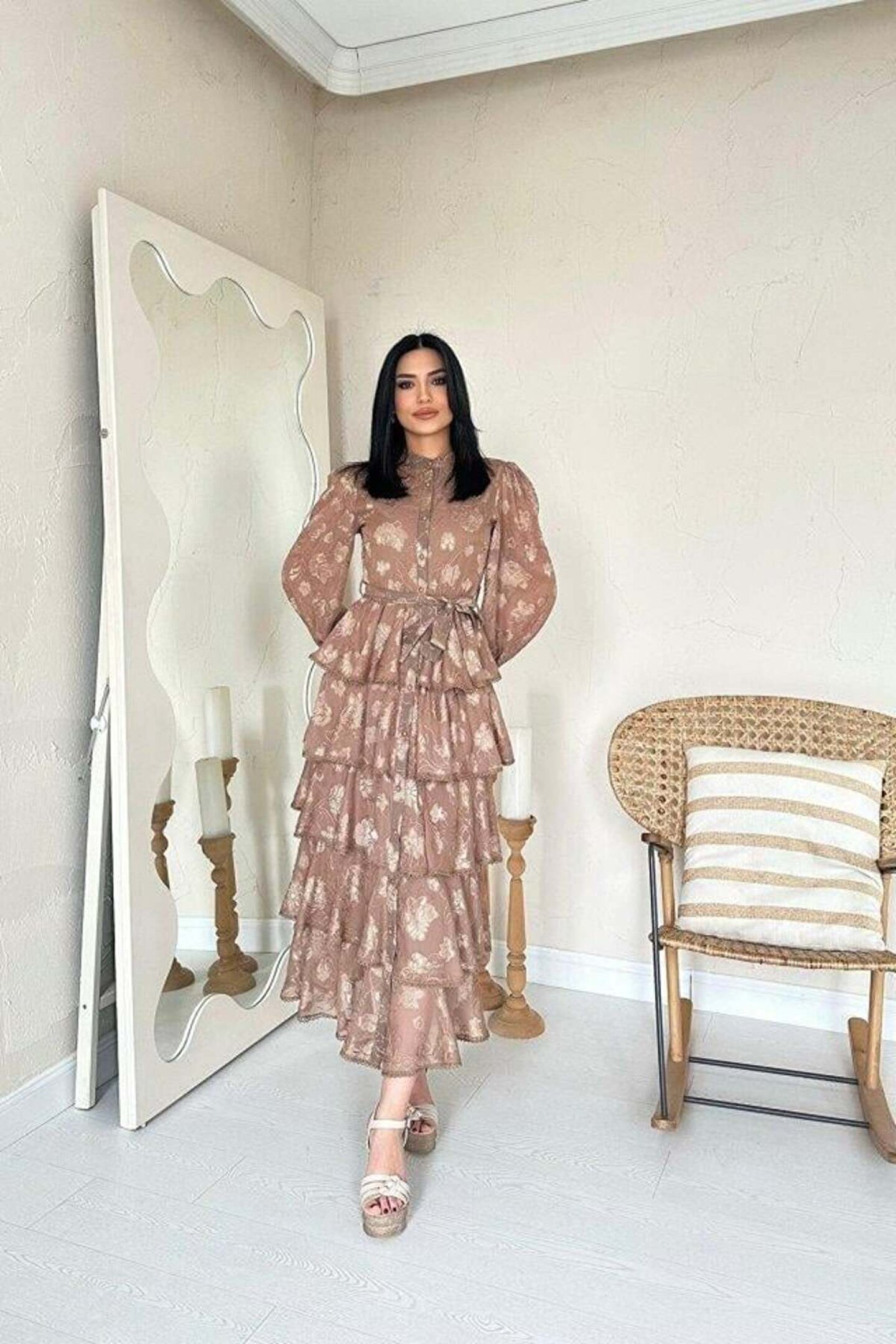 Edolika Vizon Valonlu Şeritli Kat Kat Elbise