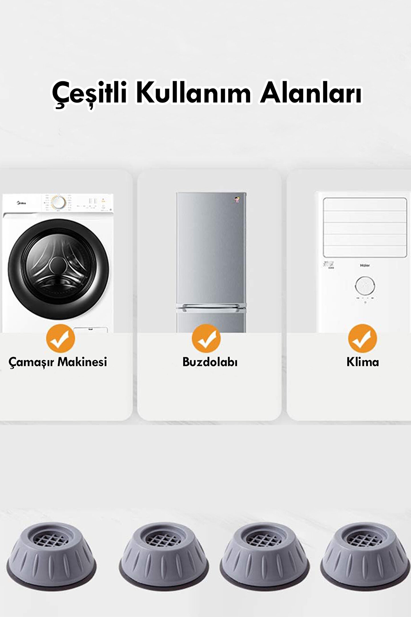 Efege 4lü Çamaşır Makinesi Altlığı Titreşim Sarsıntı Önleyici Kaydırmaz Stoper Sağlam Ayak sofra ve mutfak