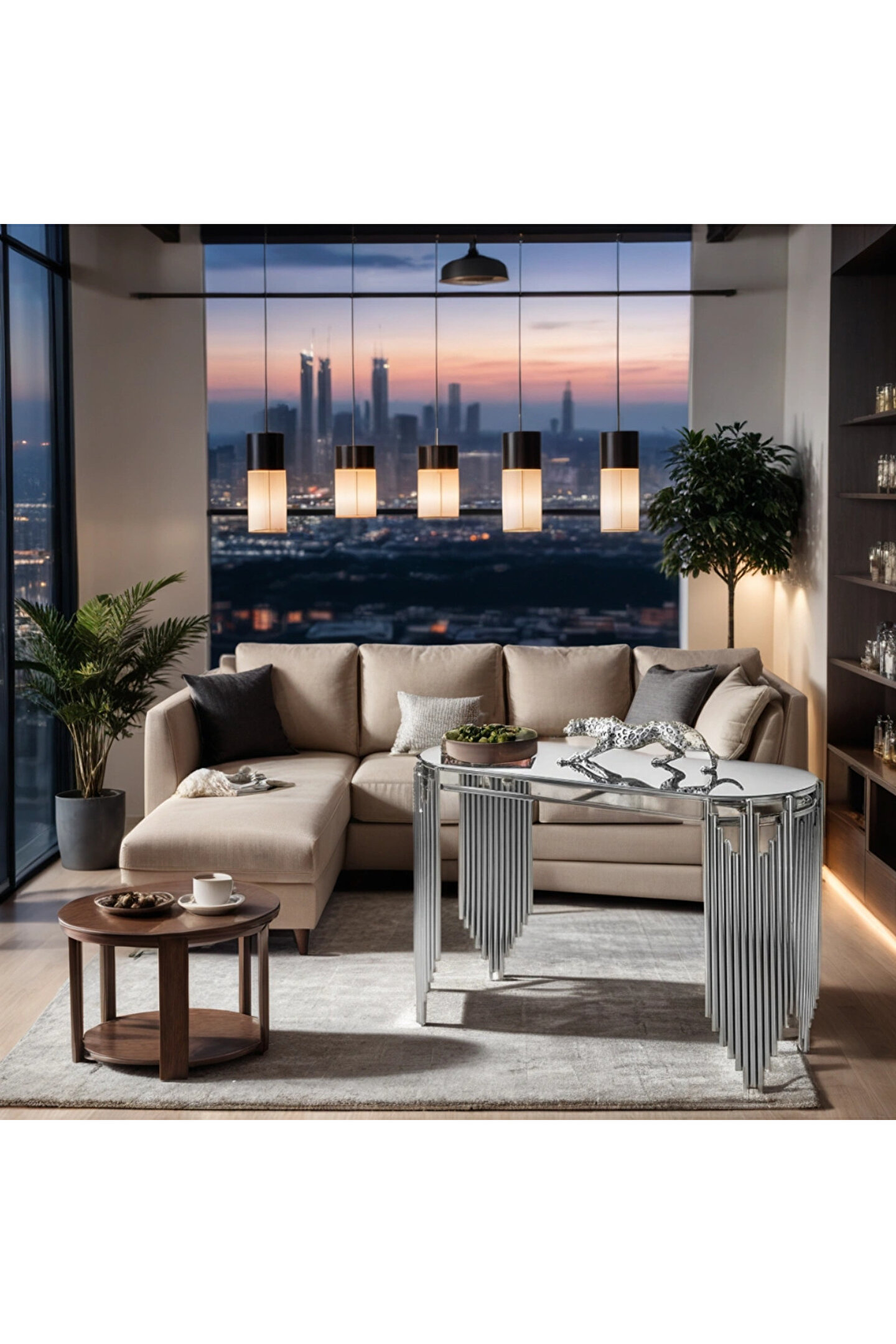 Modern tasarımıyla dikkat çeken bu dresuar, metal malzemesi sayesinde uzun ömürlü ve dayanıklı bir kullanım sunar; Aynalı yapısı ile hem dekoratif bir dokunuş katarken, mekanınızda daha geniş ve ferah bir görünüm sağlar; Gümüş rengi paslanmaz yüzeyi, şıklığı ve zarafeti evinizin her köşesine taşır; Modern stil sahibi olan bu dresuar, çağdaş yaşam alanlarına kolayca uyum sağlar ve estetik bir atmosfer yaratır;