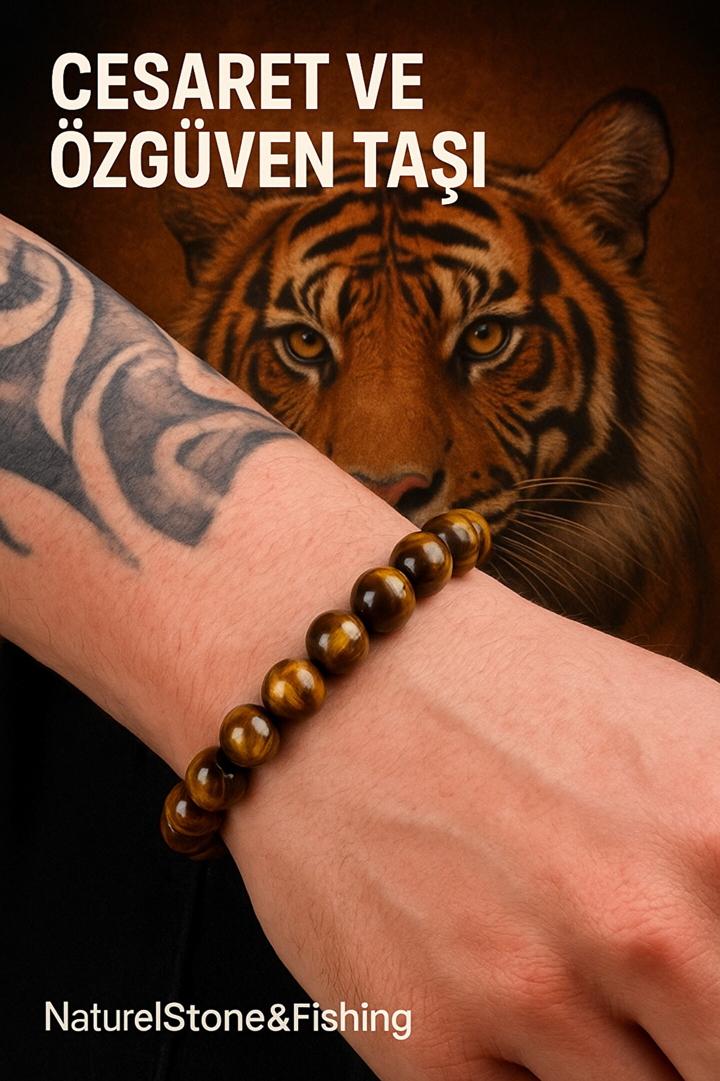 EL YAPIMI Kaplan gözü bileklik 100%100 doğal değerli taş. Cesaret ve özgüveni artırır-elastik ipli bileklik-