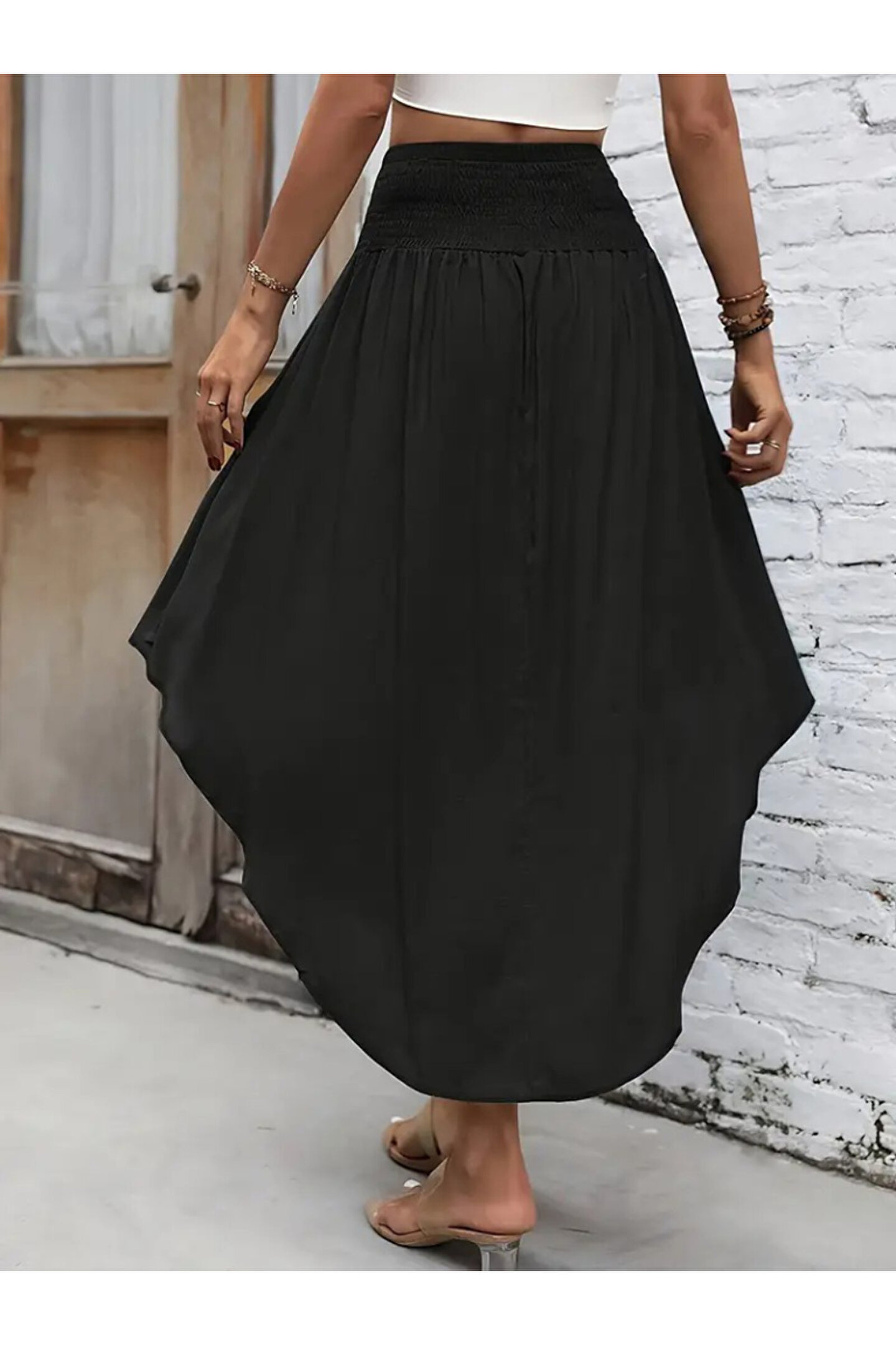 Kadın Yüksek Bel Belden Bağlamalı Asimetrik Kesim Detaylı Sandy Etek