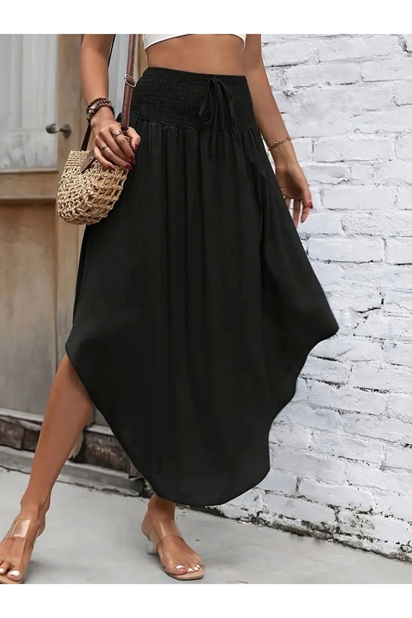 Kadın Yüksek Bel Belden Bağlamalı Asimetrik Kesim Detaylı Sandy Etek