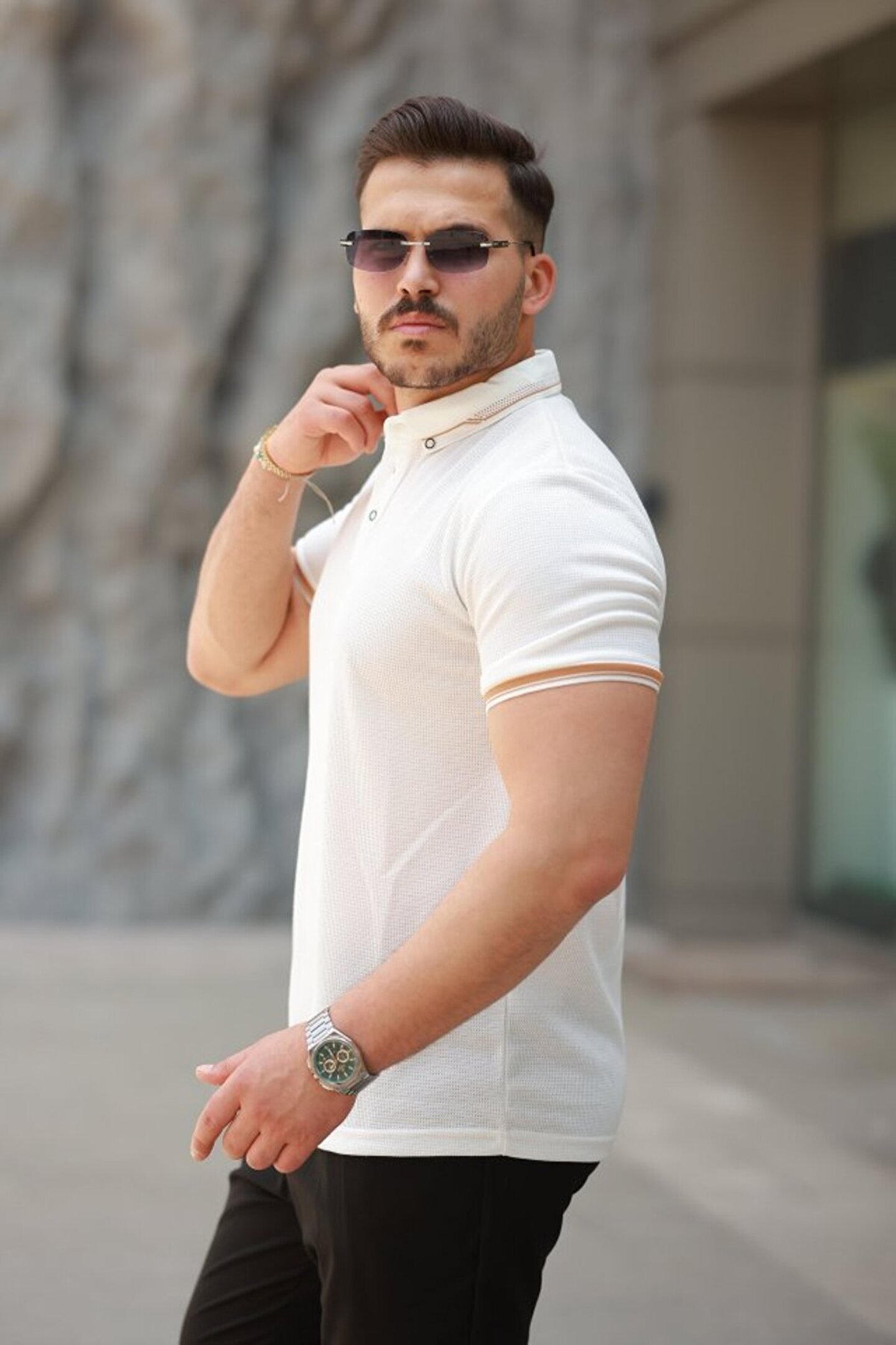 Erkek Düğmeli Yaka Waffle Kumaş Kısa Kollu Tişört