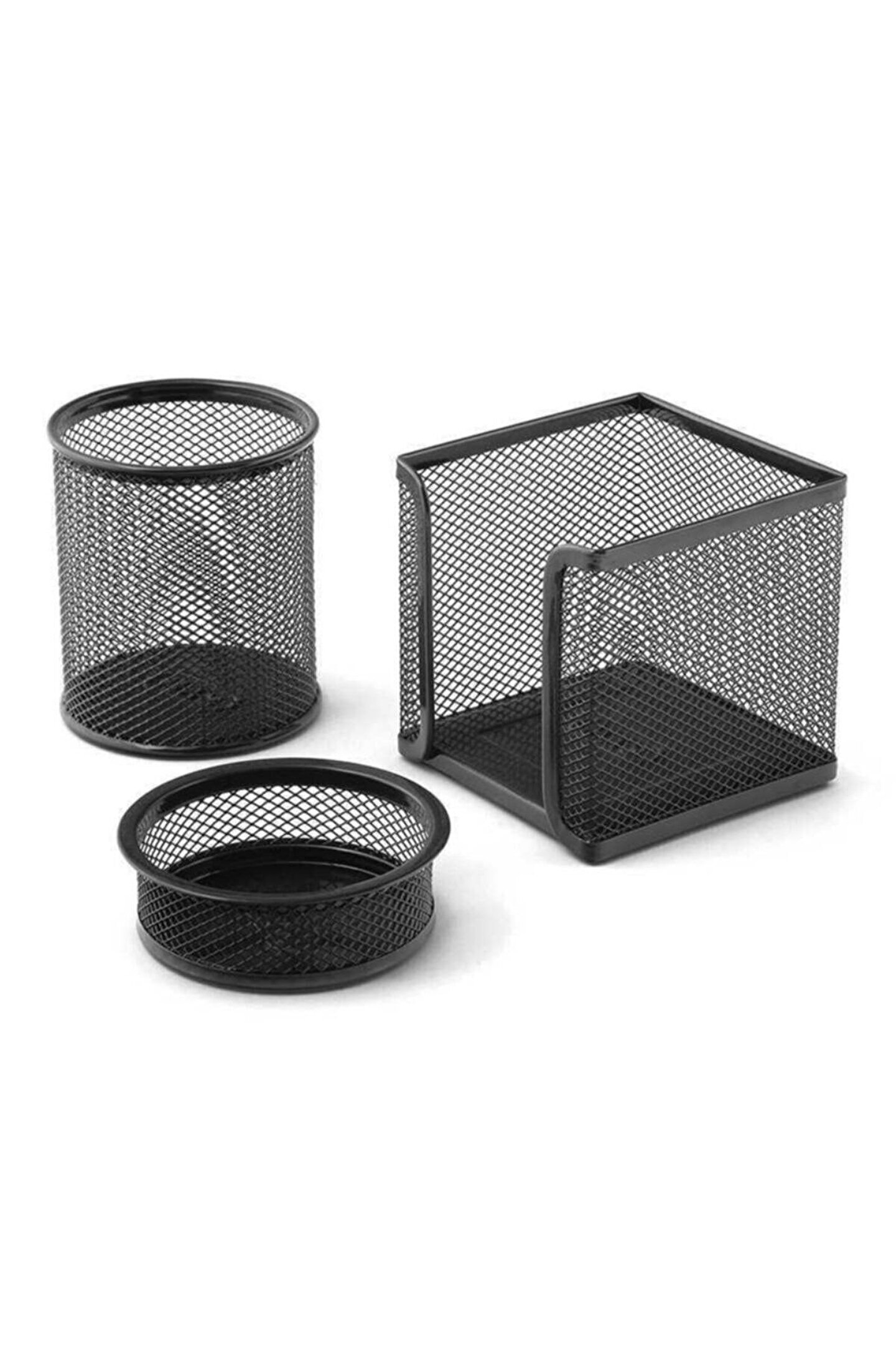 Drt Kalemlik Küpnotluk Ataçlık - Masa Üstü 3 Lü Set - Siyah Fx