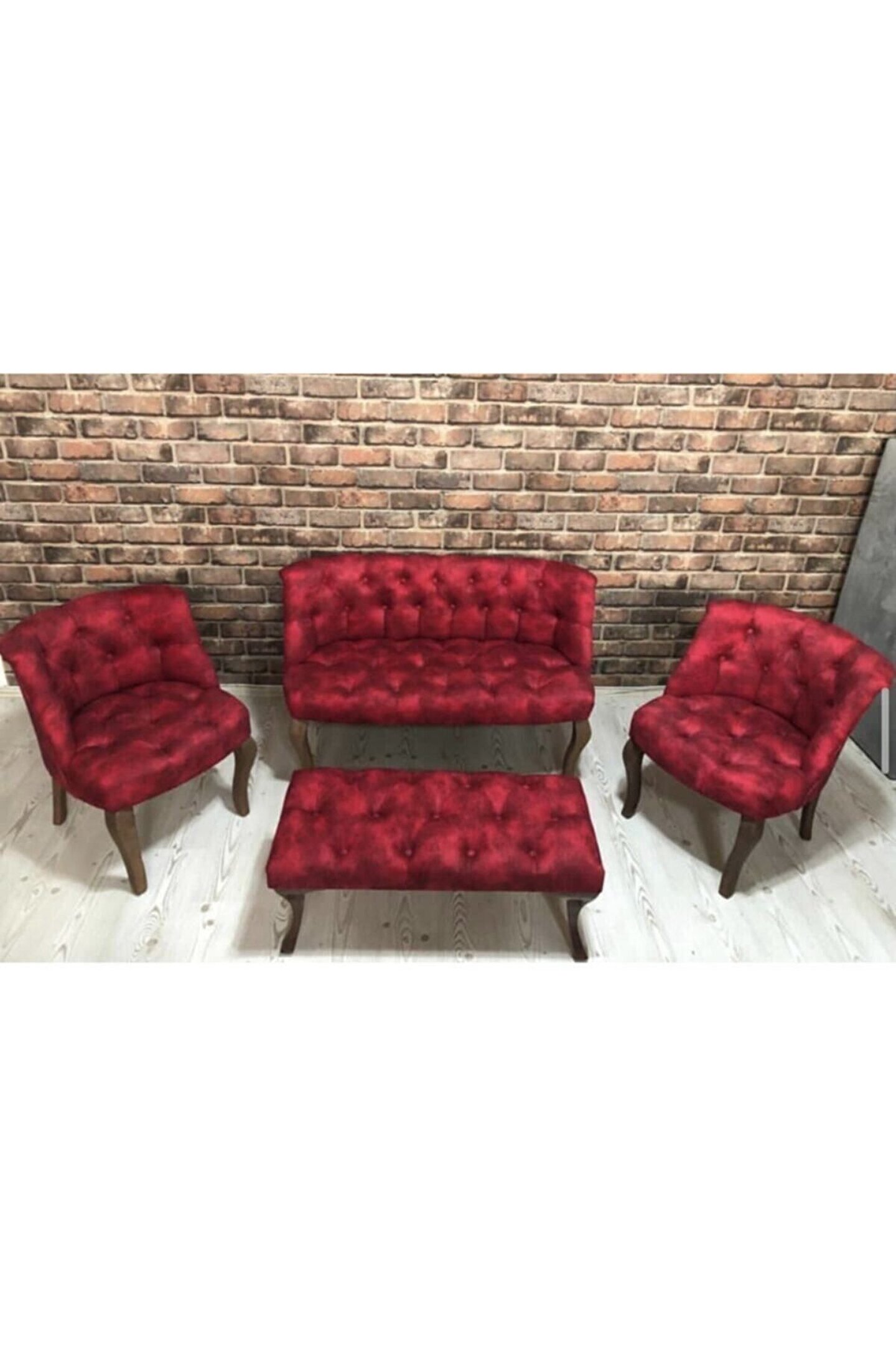 - Canlı ve enerjik bir atmosfer yaratmak için ideal, kırmızı renk seçeneğiyle dikkat çeken çay seti koltuk takımı; - İki adet berjer koltuk ve bir adet bench banktan oluşan bu set, hem konforlu oturma hem de şık bir görünüm sunar; - Klasik ve modern tasarımı bir arada barındıran bu ürün, evinizin dekorasyonuna kolayca uyum sağlar; - Dayanıklı yapısı ve kaliteli malzemesiyle uzun süreli kullanım vaat ederken, kolay temizlenebilir yüzeyi pratiklik kazandırır;