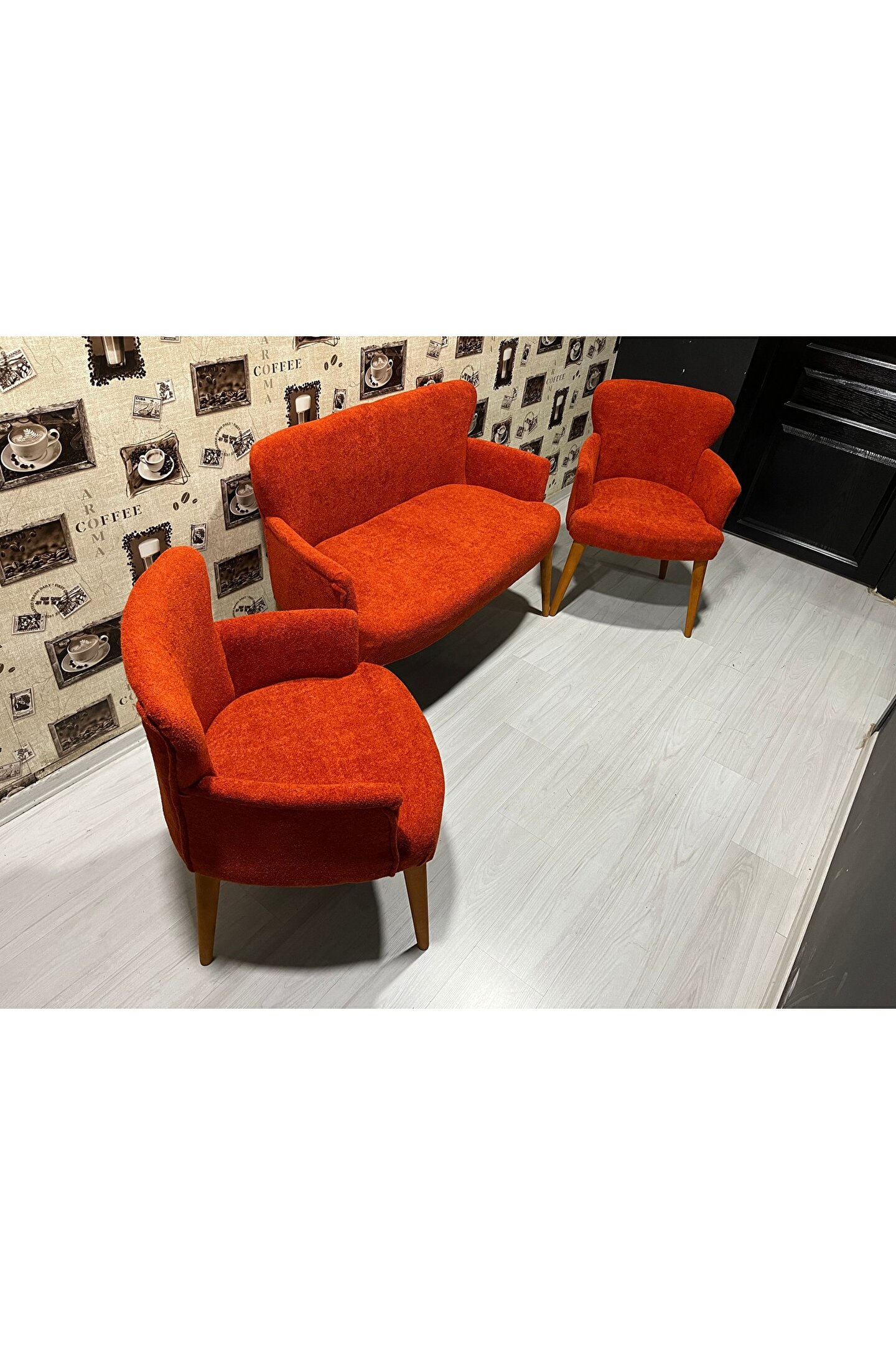 ElizzanMobilya Nev elizzan çay seti turuncu berjer koltuk tekımı 2 1 1