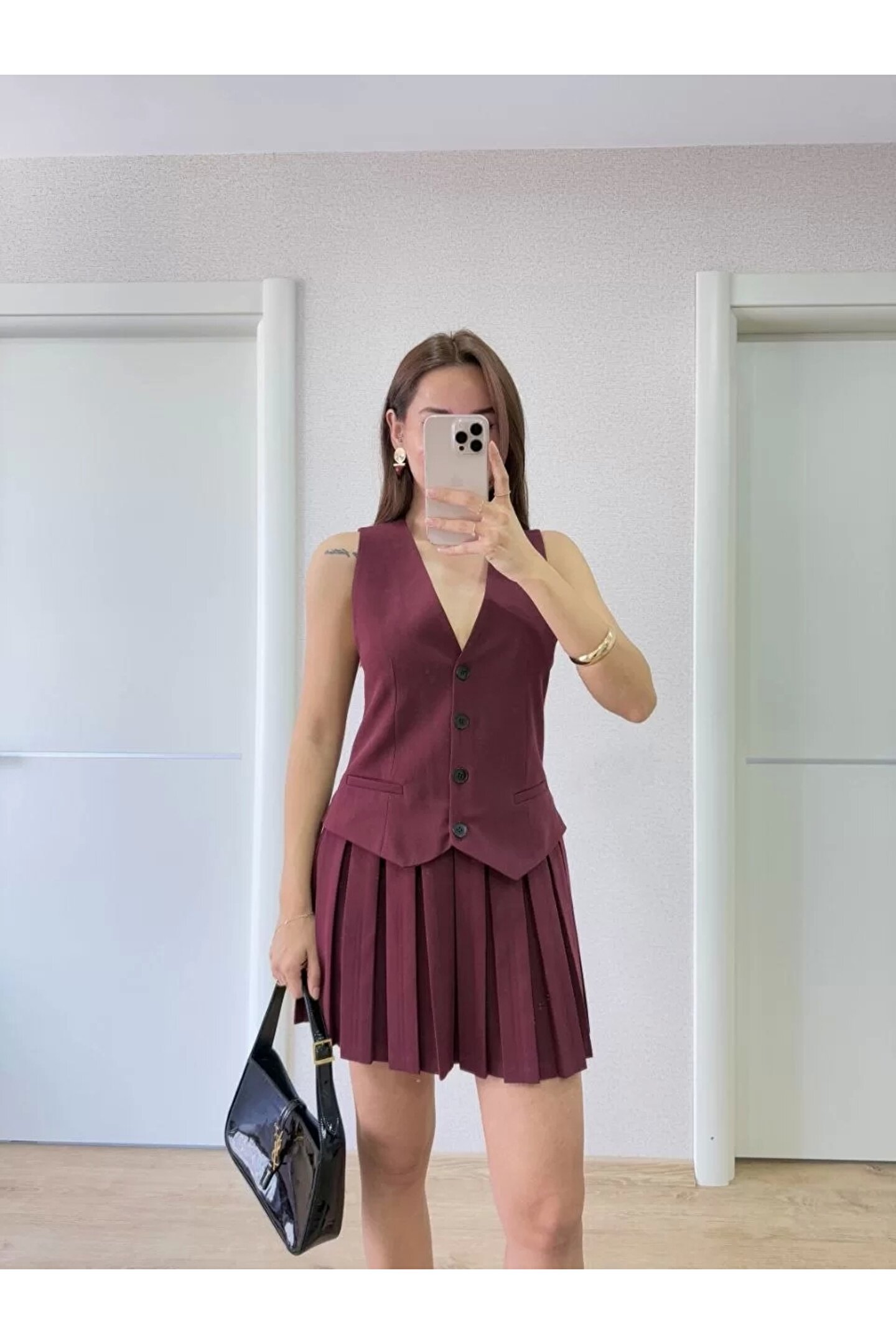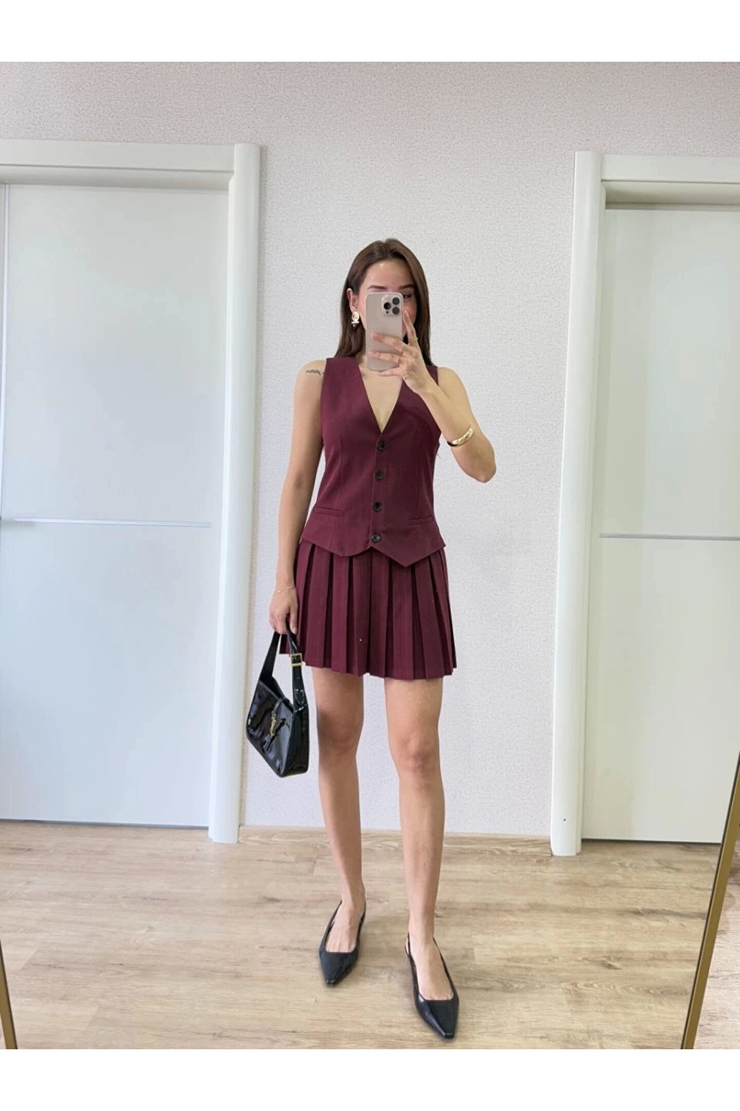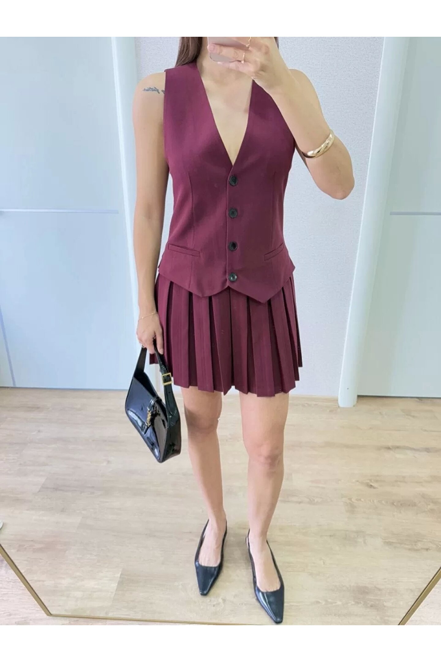 Takım Görünümlu Yelekli Mini Elbise- Bordo