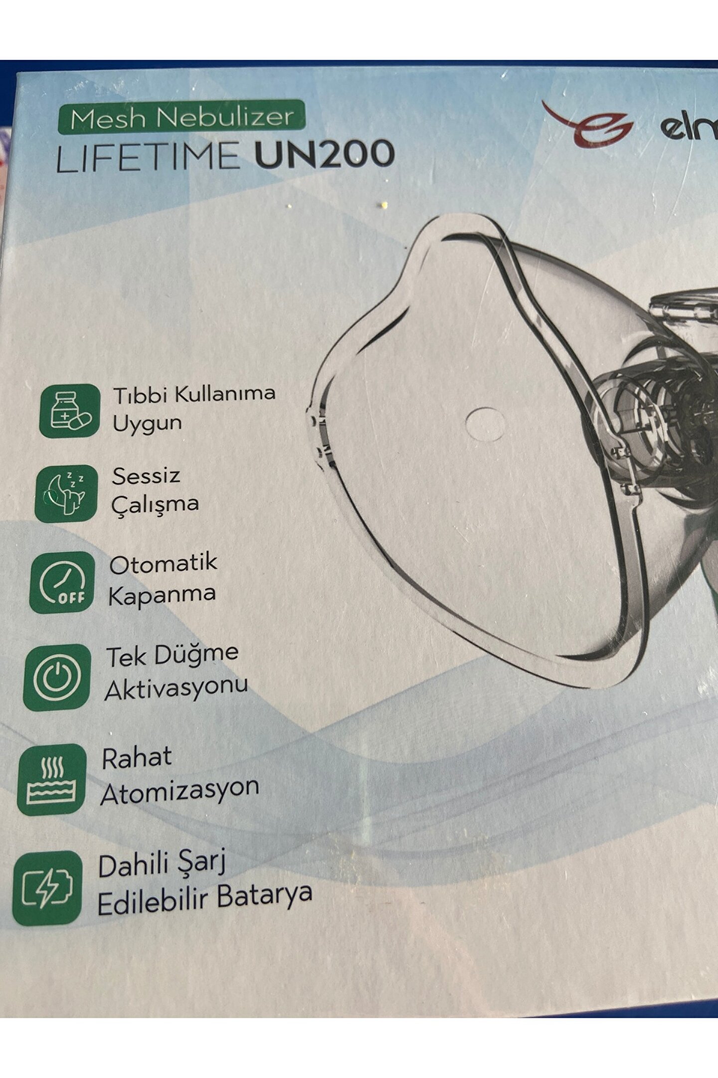- Elmaslar Lifetime Un200 Mesh Nebulizatör, solunum yolu rahatsızlıkları olan bireyler için etkili bir tedavi seçeneği sunar.; - Mesh teknolojisi sayesinde, ilaçların ince ve homojen bir şekilde dağıtılması sağlanır, bu da tedavi etkinliğini artırır.; - Kompakt ve hafif tasarımı ile taşıması kolaydır, böylece evde, işte veya seyahatte rahatlıkla kullanılabilir.; - Sessiz çalışma özelliği, kullanıcılara ve çevresindekilere rahatsızlık vermez.; - Kolay temizlenebilir yapısı sayesinde hijyenik kullanım imkanı sunar ve uzun süreli kullanım için idealdir.