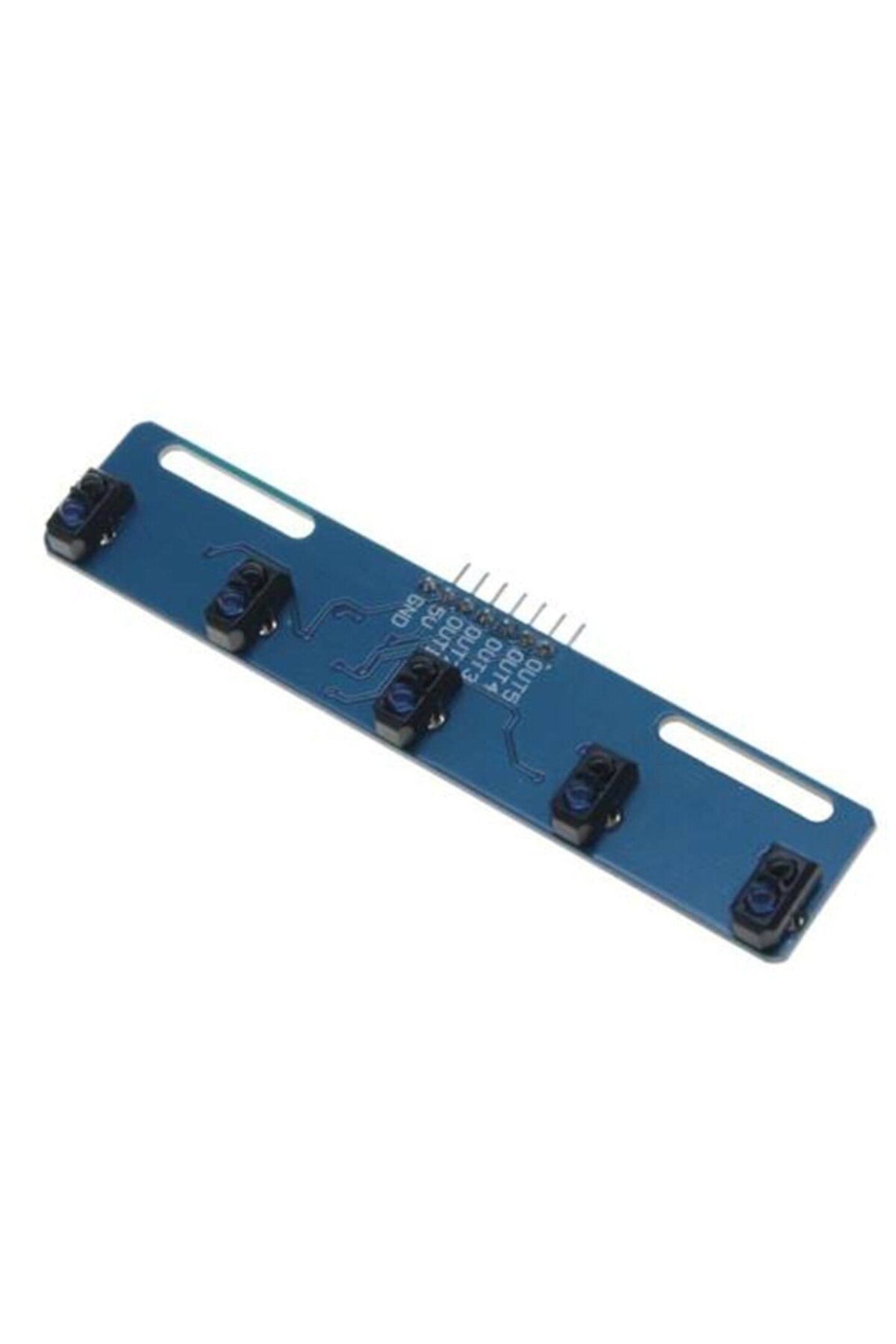 Teknik Özellikler: 1. ; Tip: 5-li Çizgi İzleme Sensörü 2. ; Boyut: 95mm x 20mm (LxW) 3. ; çip kullanın: 74HC14D 4. ; çalışma gerilimi: 3.3v-5v 5. ; Çıkış modu: dijital sinyal 6. ; Ölçüm mesafesi: 1CM-1.5CM 7. ; Algılama sondası: TCRT5000L 8. ; Algılama sinyali: siyah çizgi girişi düşük algılama, beyaz algılama 9. ; doğruluk, algılama aralığı çıkışı düşük seviyesinin ötesindedir. ; 10. ; LED durumu: siyah çizginin algılanması LED kapalı, beyaz çizgi LED ışığının algılanması Bağlantılar: 1.VCC: VCC, 3.3V ~ 5V voltajına erişebilen güç giriş portudur 2.GND: GND, güç kaynağının negatif girdisidir 3.OUT1 ~ 5: OUT, sinyal çıkış portu, MCU link I / O portudur.;