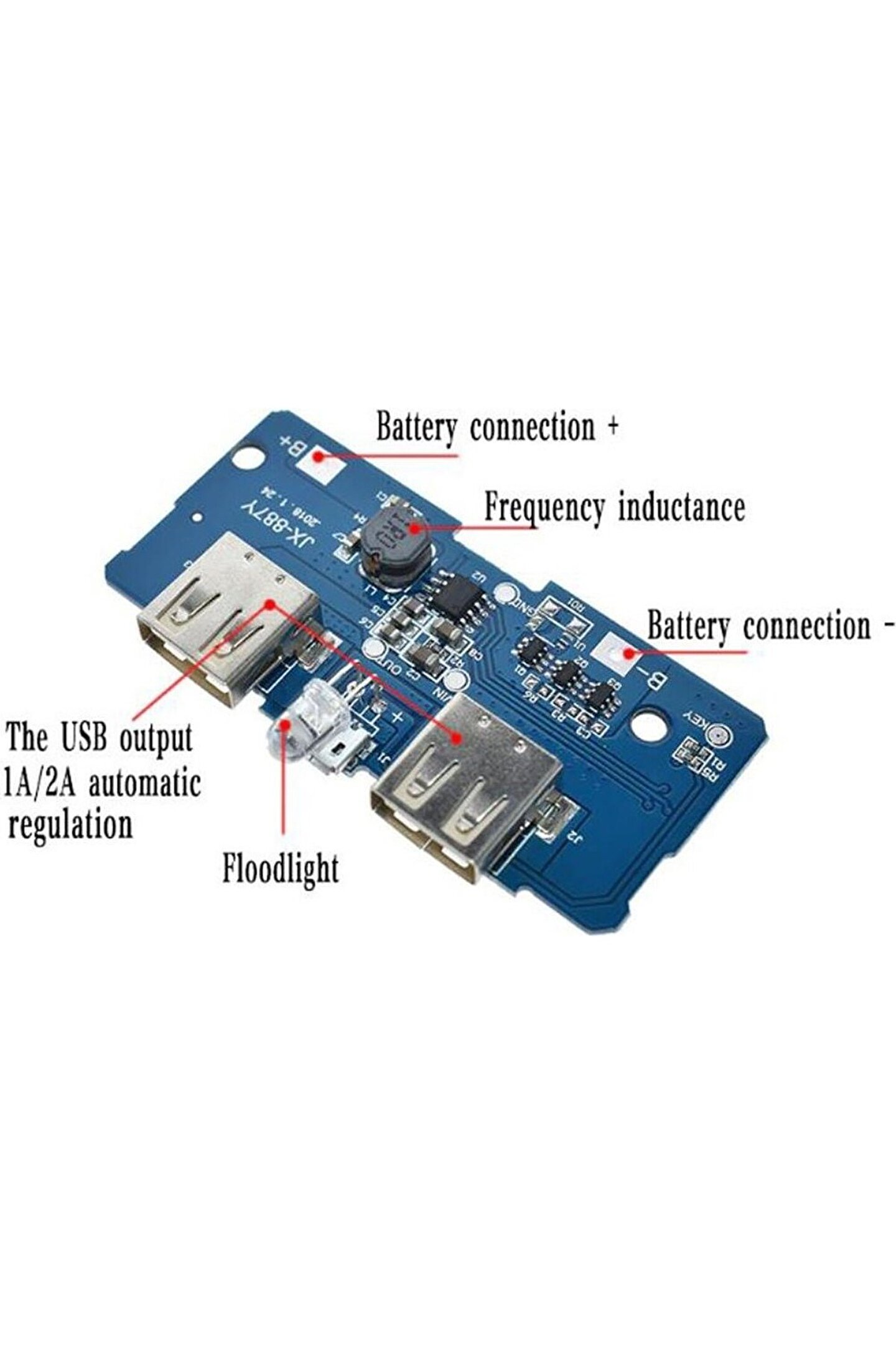 Bu kart, 18650 pilleri kullanarak kendi power bank cihazınızı oluşturmanıza olanak tanır. Kart üzerinde iki adet USB çıkışı bulunur ve her çıkışta 2.1 A veya 1 A akım sağlayabilir. Kartın arkasında bulunan 4 LED, pilin şarj durumunu gösterir. Kart ayrıca aşırı akım korumasına sahiptir ve pillerinizin zarar görmesini önler.