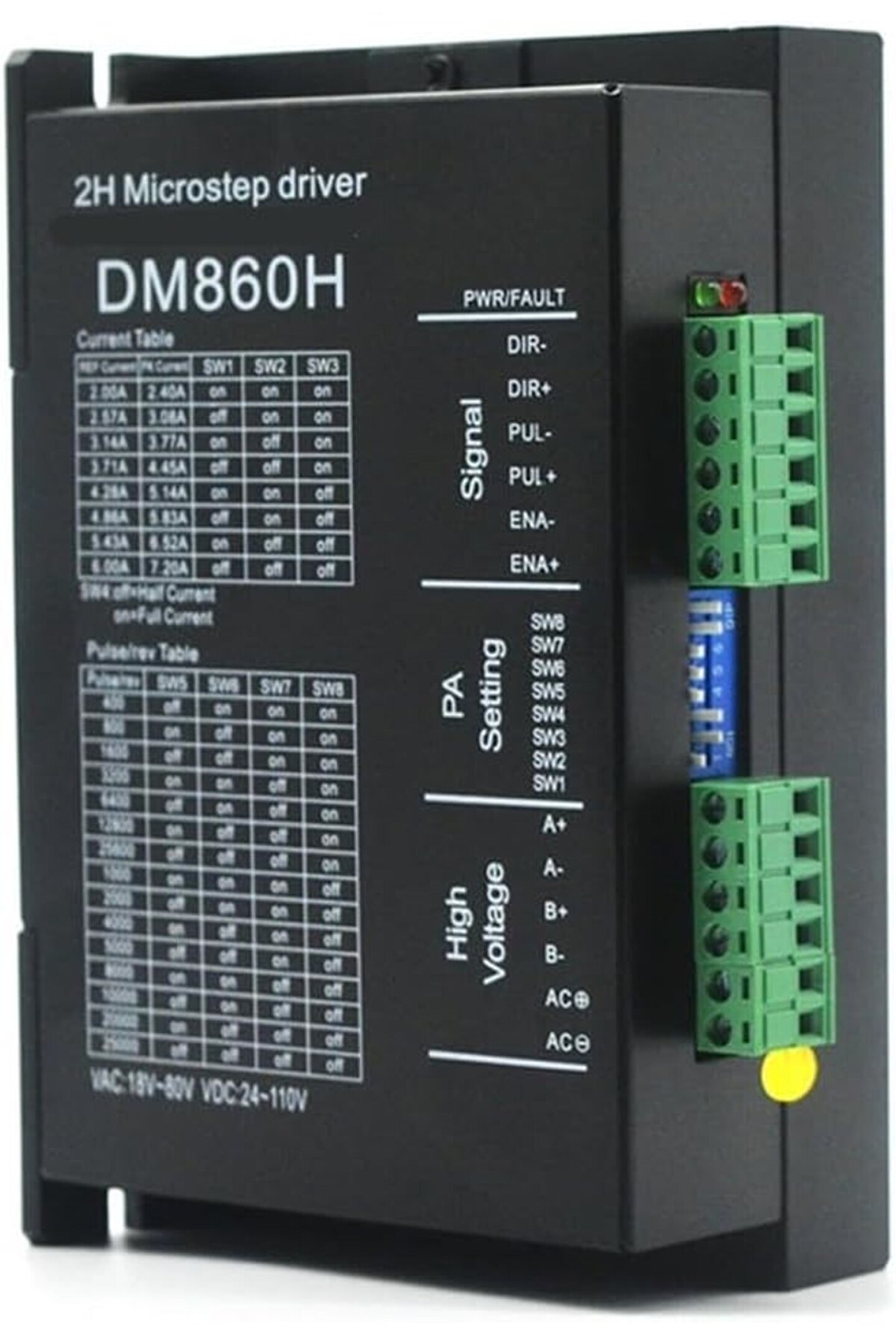 DM860H, mikrodenetleyiciden (Arduino, PLC veya Mach3 kartı) gelen sinyalleri işleyerek step motorların hassas, güçlü ve sessiz bir şekilde dönmesini sağlar. Özellikle NEMA 23 ve NEMA 34 serisi motorlar için ideal olan bu sürücü, hem AC hem de DC voltaj ile çalışabilme esnekliği sunar.