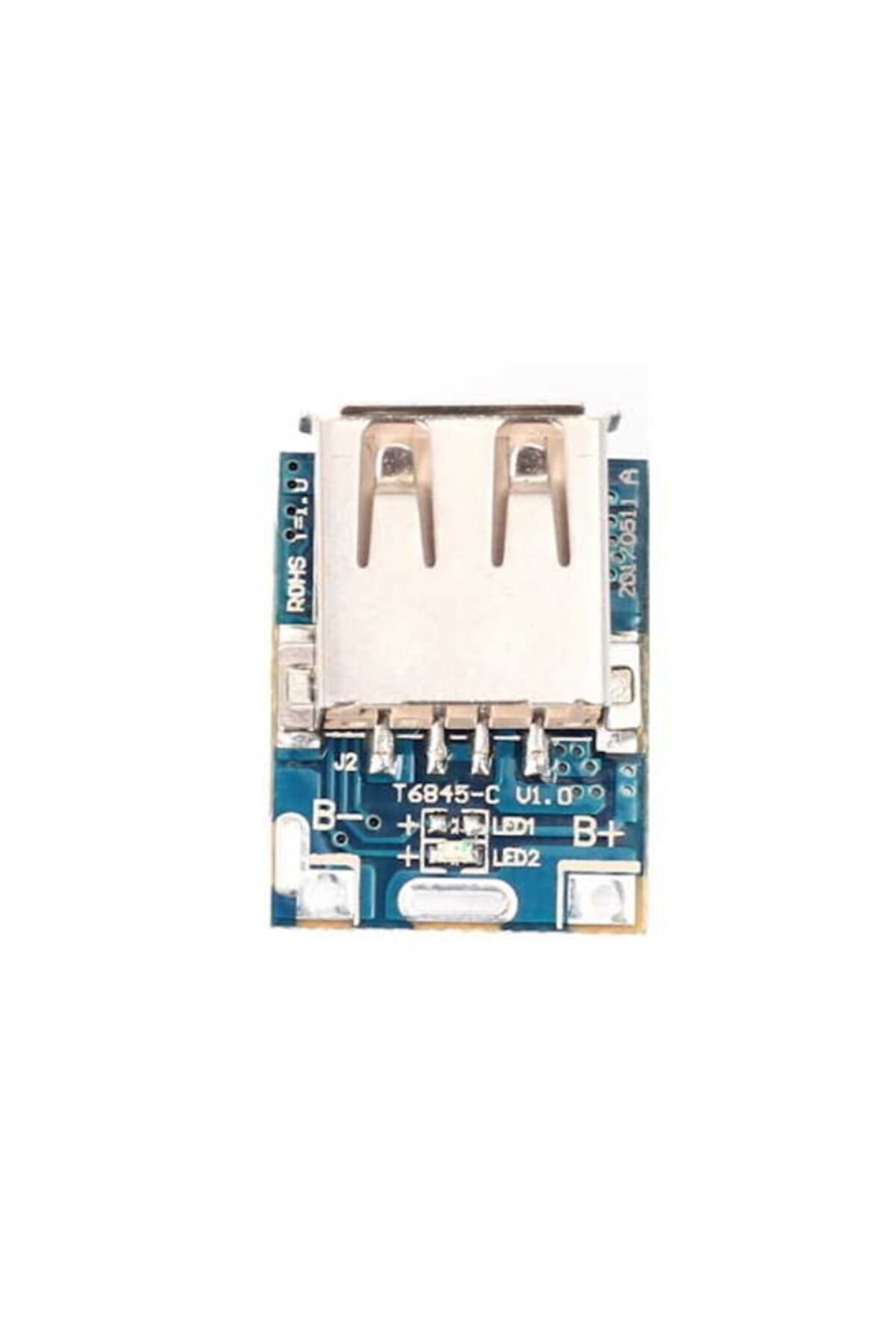 Powerbank Devresi - Lityum Pil Şarj - 5V 1A USB Boost Modül Lion Bu ürün sayesinde Micro USB'den pilinizi şarj edip, USB A soketinden de 5V elde edebilirsiniz. Aşırı gerilim koruması, kısa devre koruması ve aşırı sıcaklık koruması mevcuttur. Özellikler: Giriş gerilimi: 3.7 - 5.5V ; Şarj akımı: 1A ; Çıkış gerilimi: 5V ; Çıkış akımı: 1A ; Şarj ve deşarj durum göstergesi ; Boyutlar: 1.5 x 2.2 x 1.2 mm (En x Boy x Yükseklik) ; Paket İçeriği: 1 x Lityum Pil Şarj - 5V USB Boost Modül ;