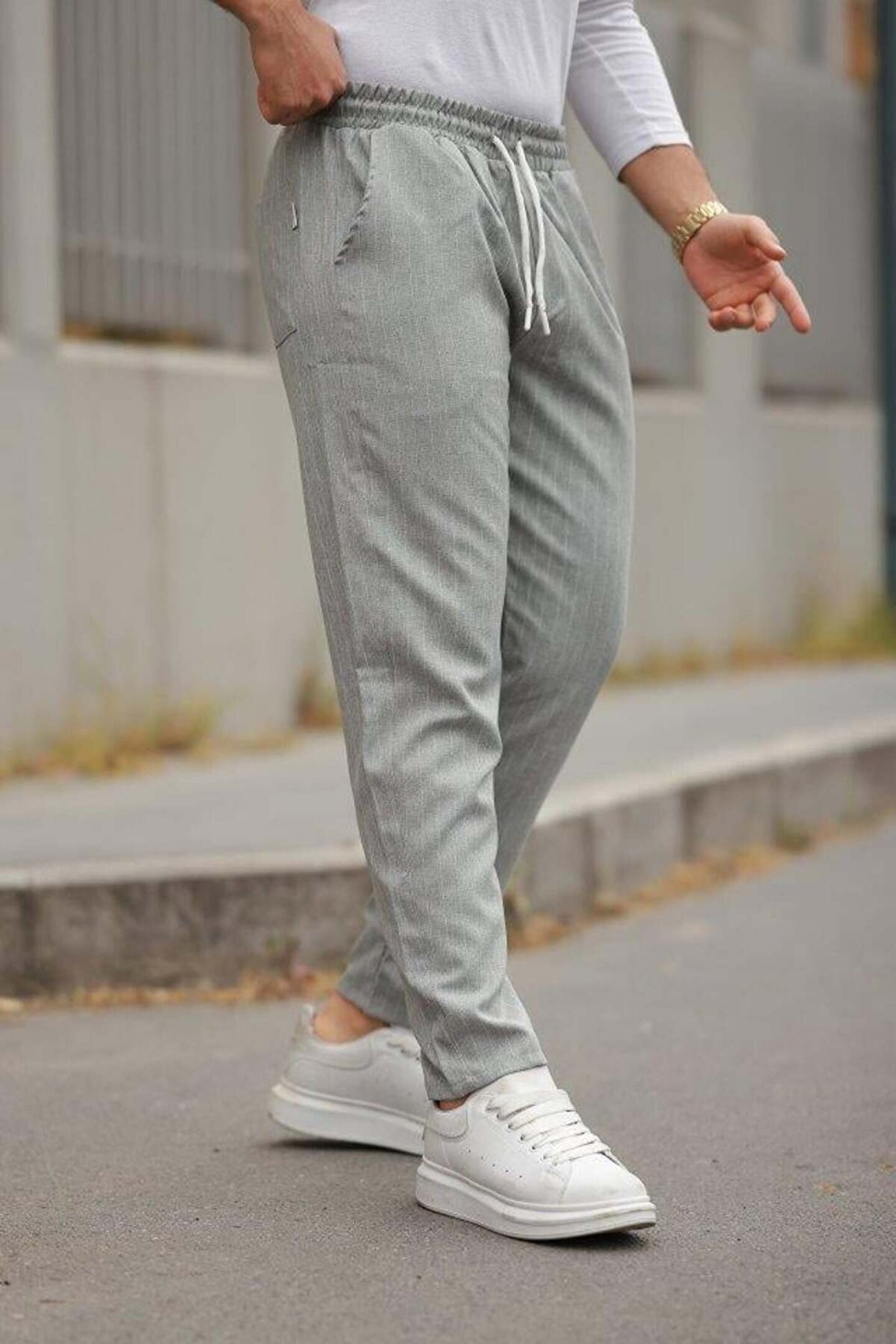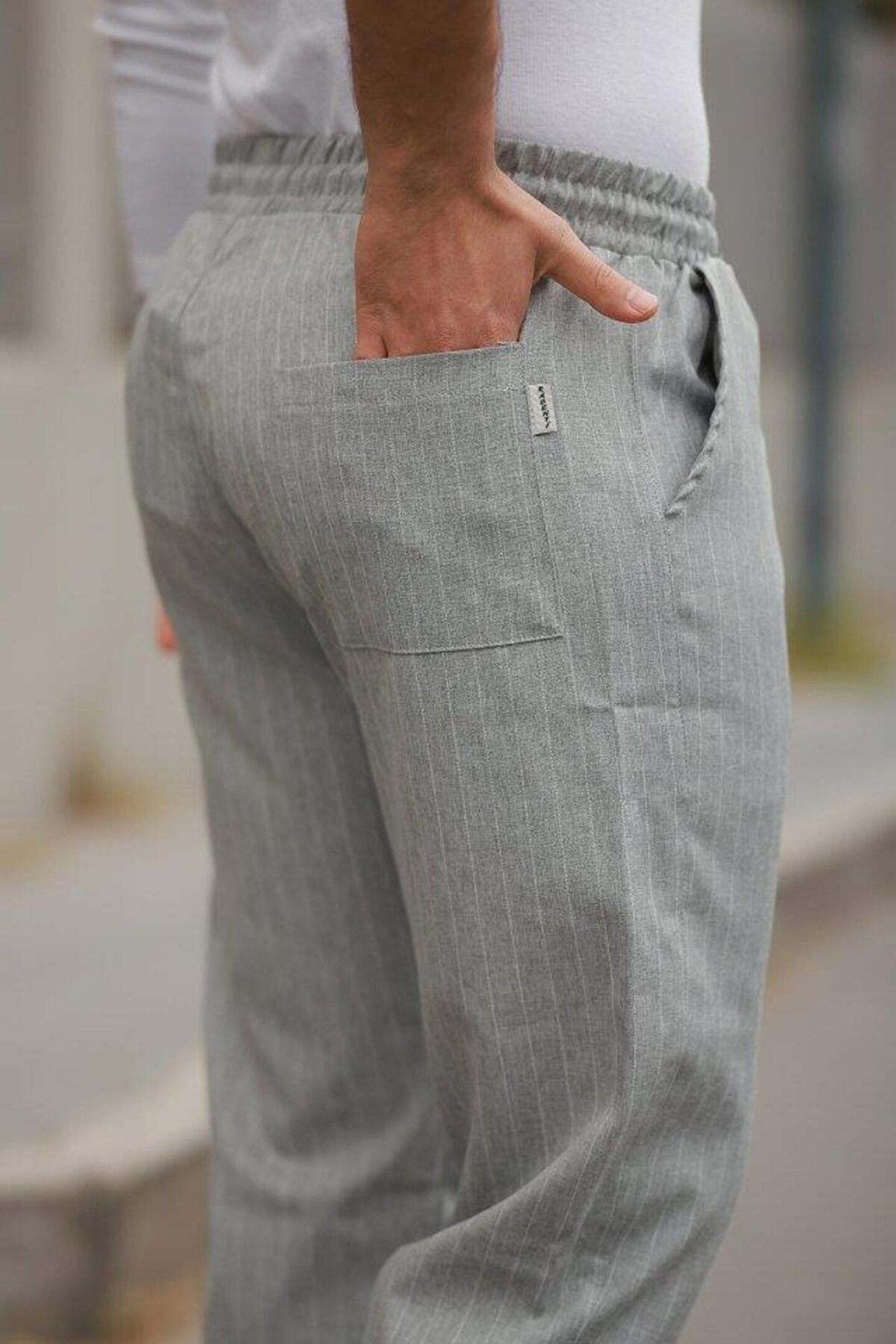 Emiray Store Erkek Beli Bağcıklı çizgili Pantolon