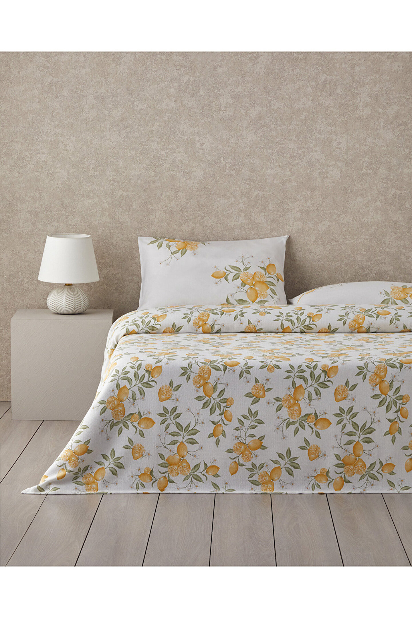 Amalfi Breeze Baskılı Çift Kişilik Pike Takımı 200x220 cm Sarı