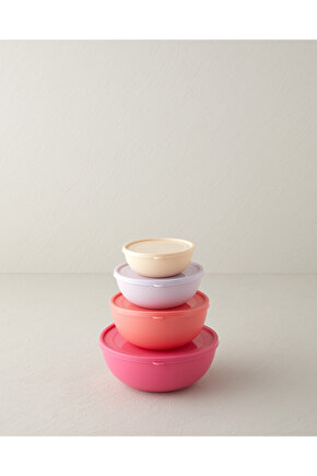 English Home Blitz Plastik 4lü Saklama Kabı 220 ml-428 ml-687 ml-1100 ml Renkli