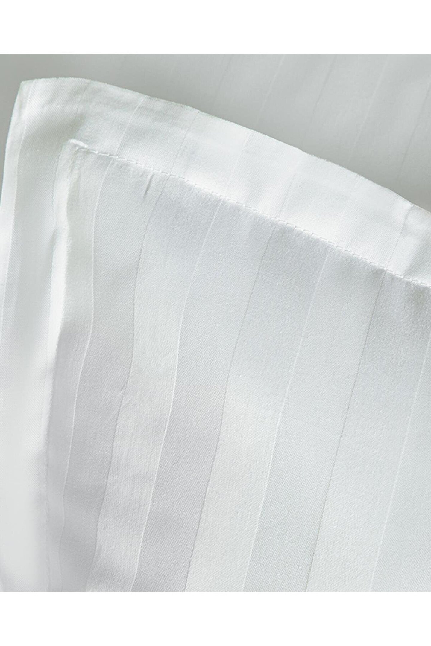 Brilliant Çizgili Pamuk Saten Kulaklı 2 li Yastık Kılıfı Beyaz 50 x 70 Whıte Collectıon