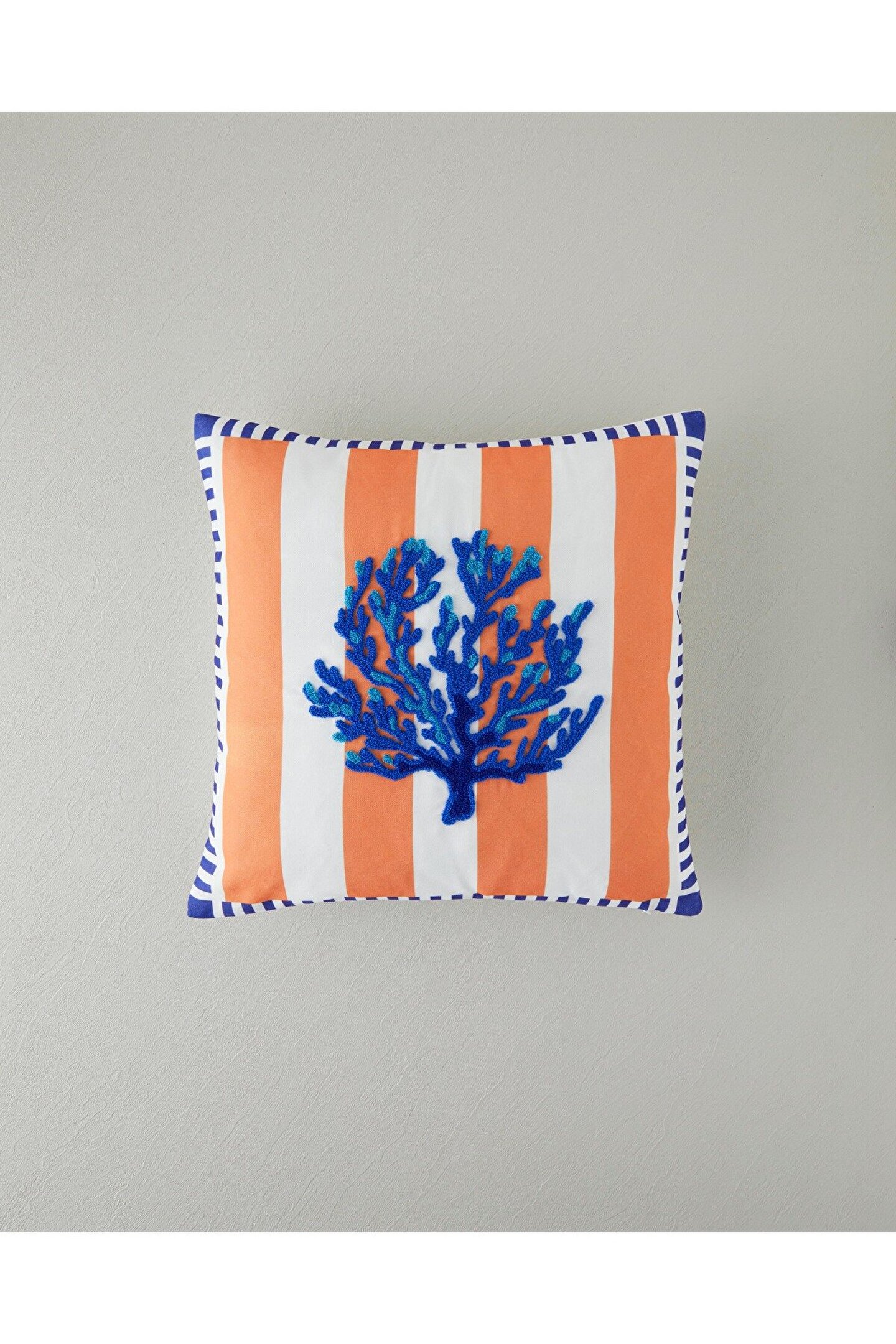 Corallo Punch Nakışlı Dekoratif Kırlent Lacivert-Turuncu