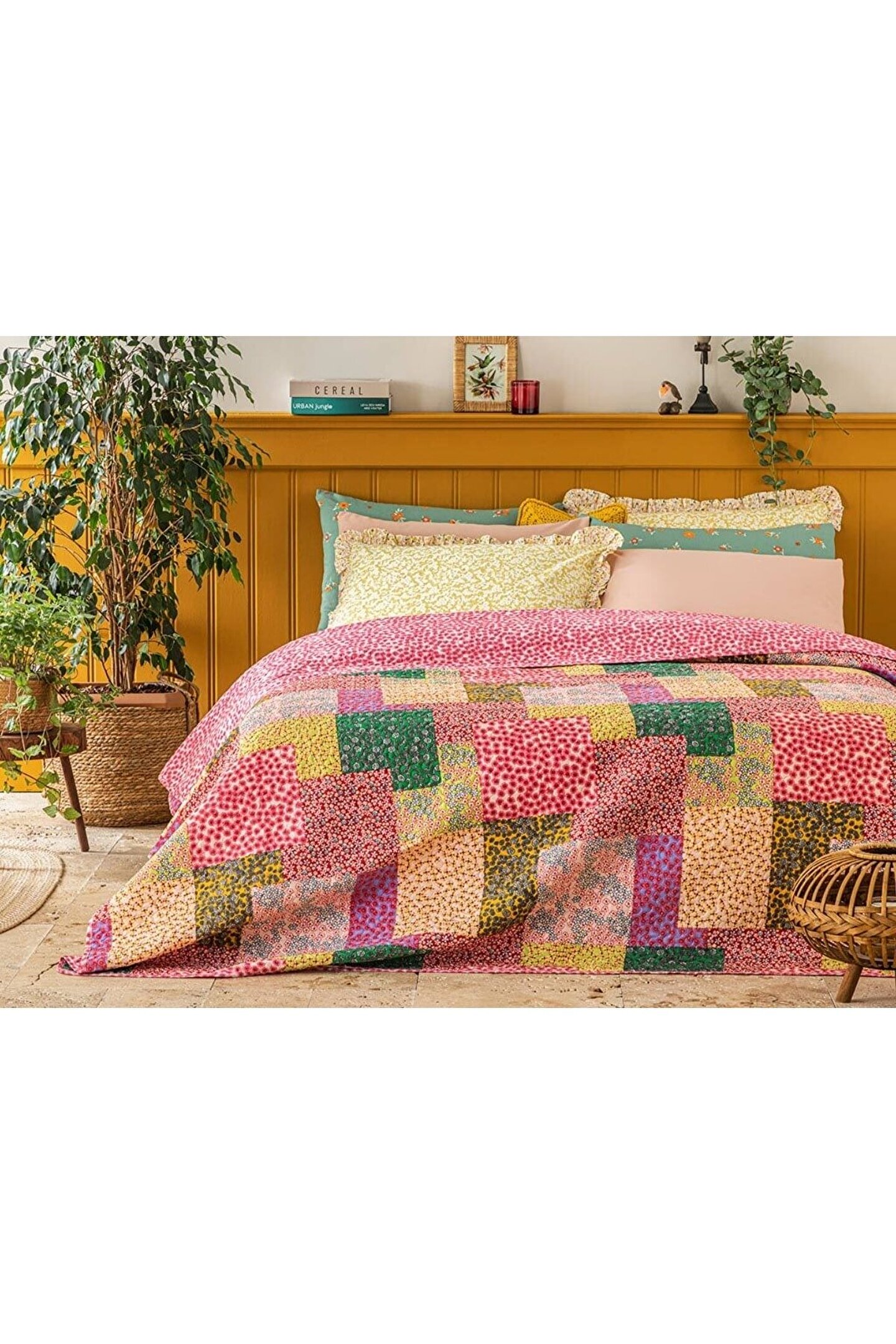 Daisy Fest Patchwork Tek Kişilik Çok Amaçlı Örtü 160x220 Cm Pembe