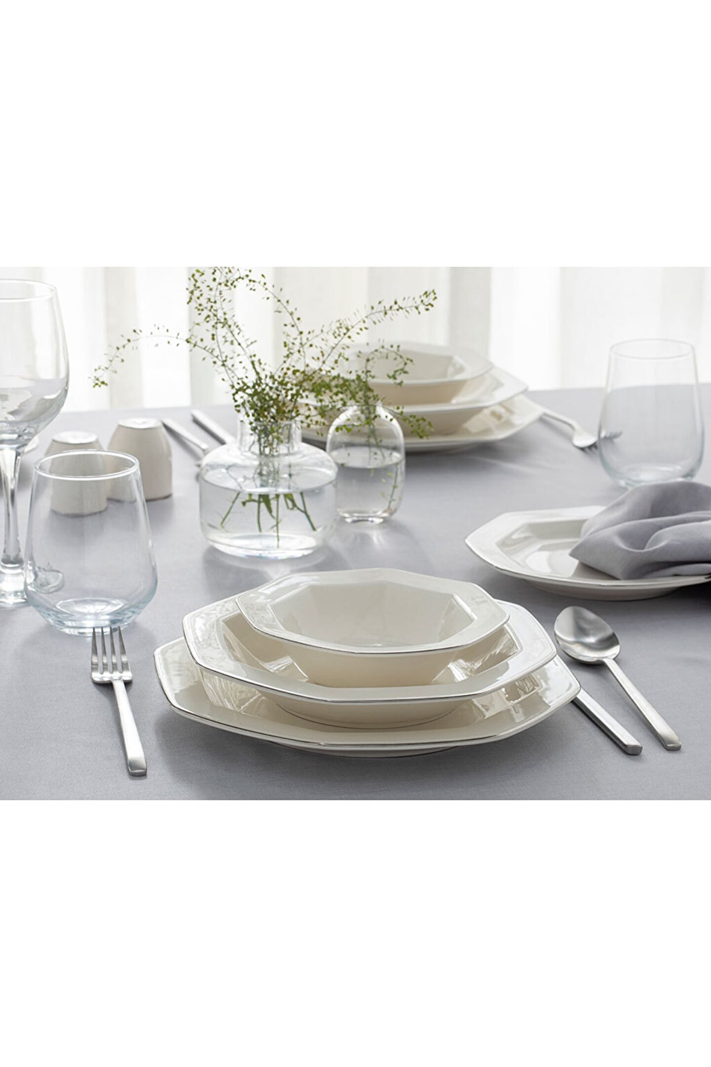 24 Parça Yemek Takımı 26; 22; 20; 17 cm (6 Adet 26 cm Servis Tabağı, 6 Adet 22 cm Çukur Tabak, 6 Adet 24 parçadan oluşan 6 kişilik yemek takımı, günlük veya misafirlik sofralarda yemek servisi için kullanılır; Desen: Lioni Renk: Gümüş Ebat: 26; 22; 20; 17 Cm Koleksiyon/Tema: Luxury Collection Ürün Bileşimi: Porselen Ürün Tarifi: 24 Parça 6 kişilik Malzeme: Porselen Kumaş: # Üretim Yeri: TR Ürün Kodu: 10036365002 Ürün Barkodu: 8680887612088 Ütü Yapılamaz Elde Yıkama Yapılabilir Makinede Yıkama Yapılamaz Kuru Temizleme Yapılamaz;