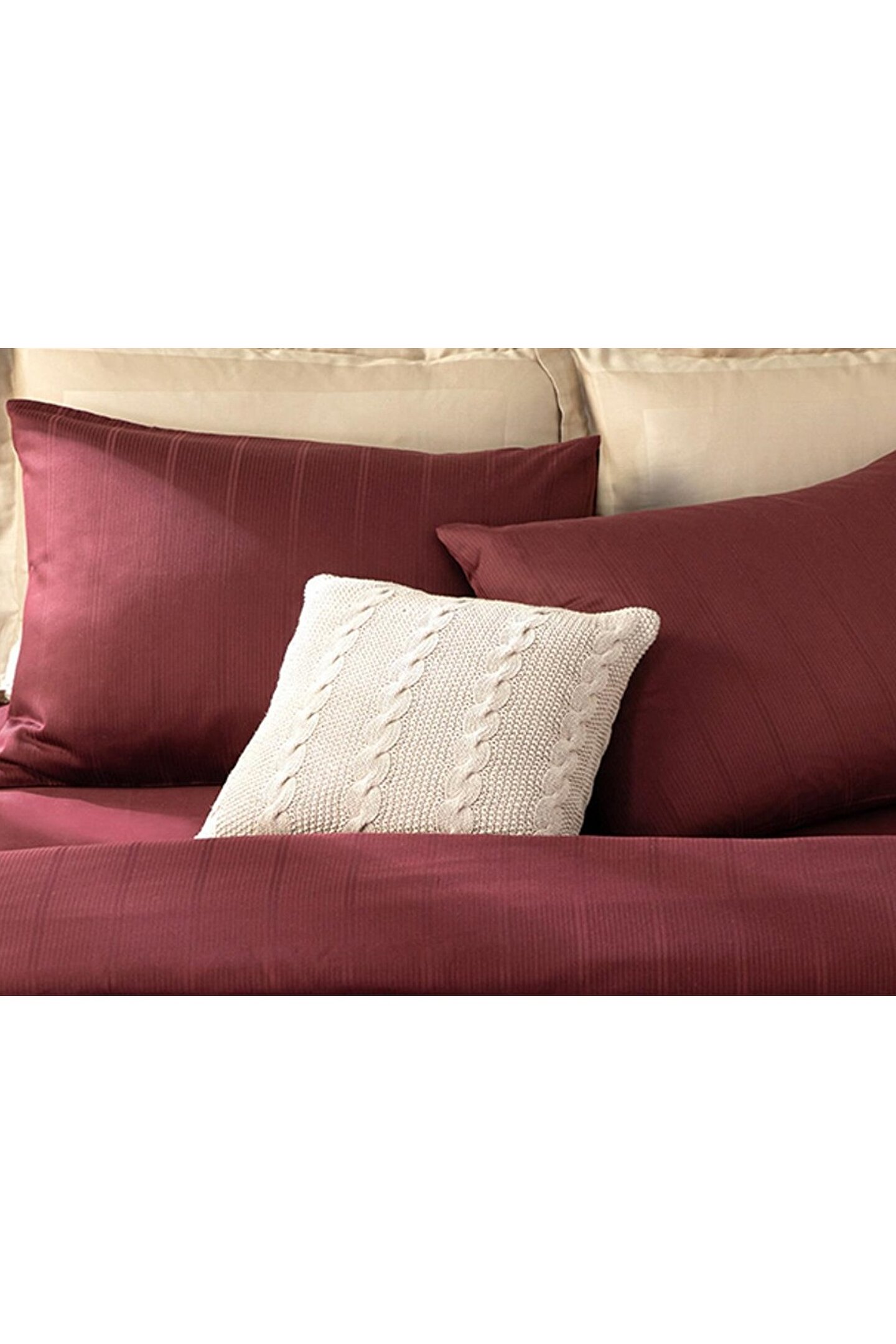 English Home Listra Çizgili Pamuk Saten 2 li Yastık Kılıfı Fildişi