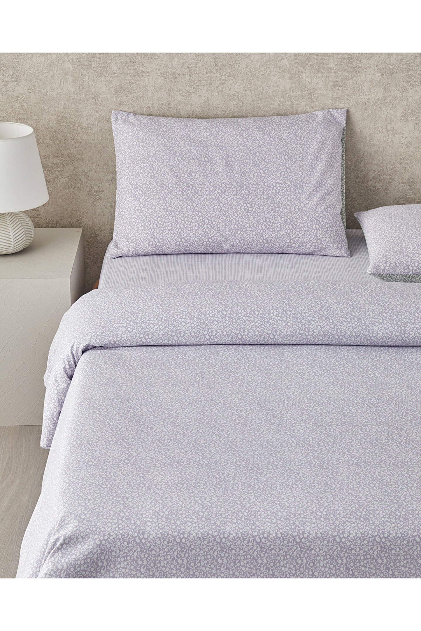 English Home Lush Blooms Kolay Ütülenir Tek Kişilik Nevresim Takımı 160x220 cm Lila-Yeşil