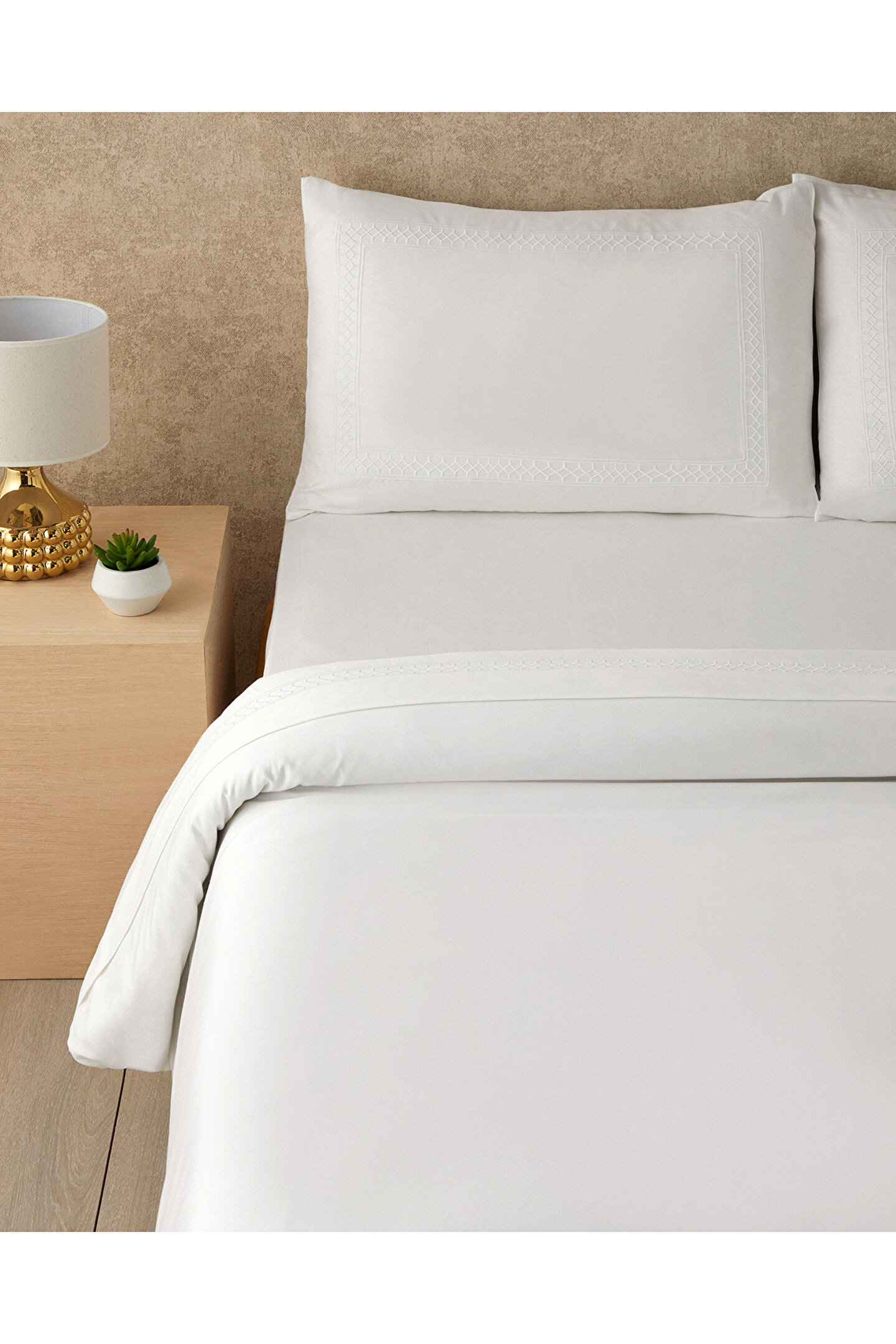 English Home Modello Pamuk Saten Nakışlı King Size Çarşaflı Nevresim Takımı Beyaz