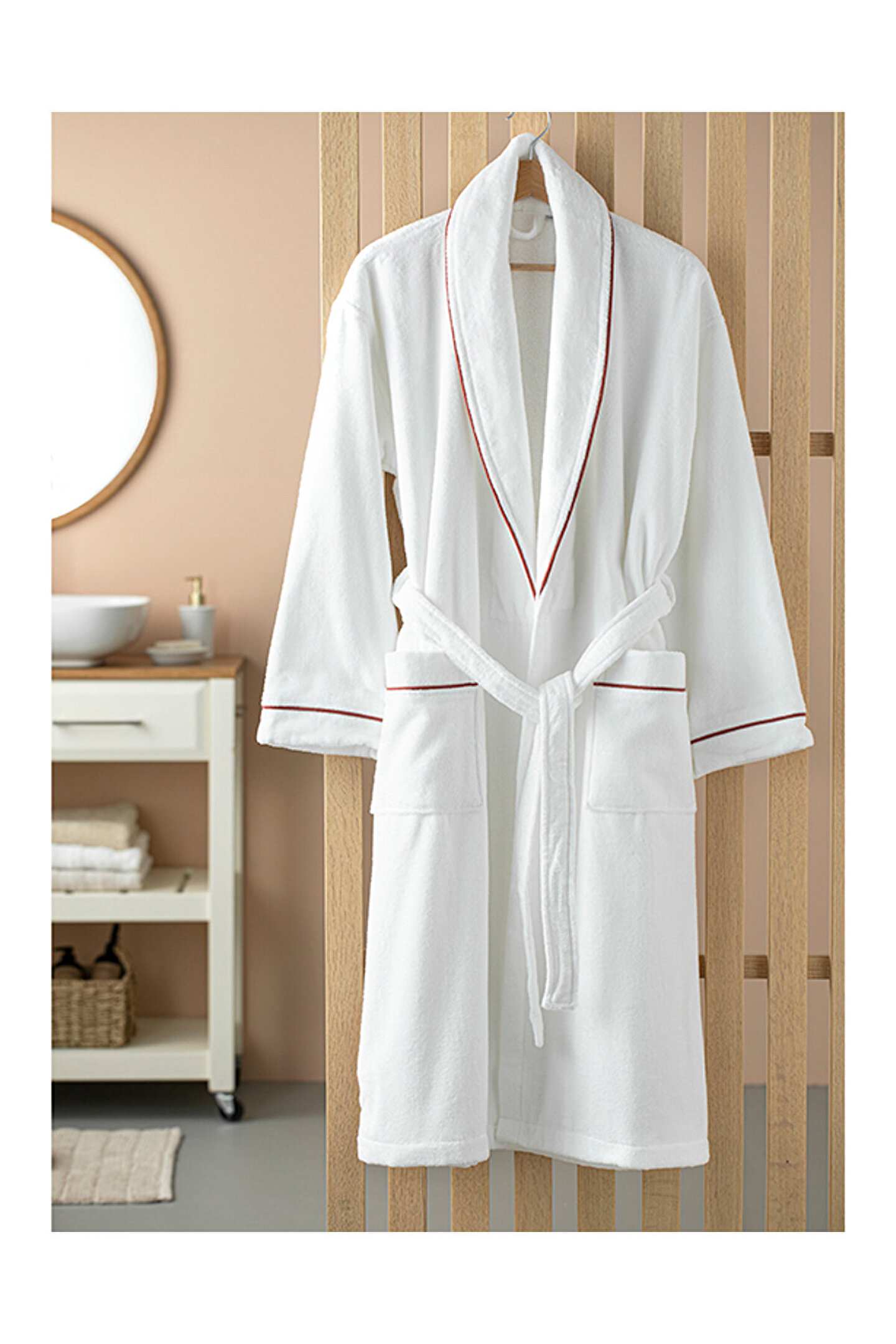Premium Kadife Pamuklu Biyeli Bornoz L-xl Beyaz-kiremit
