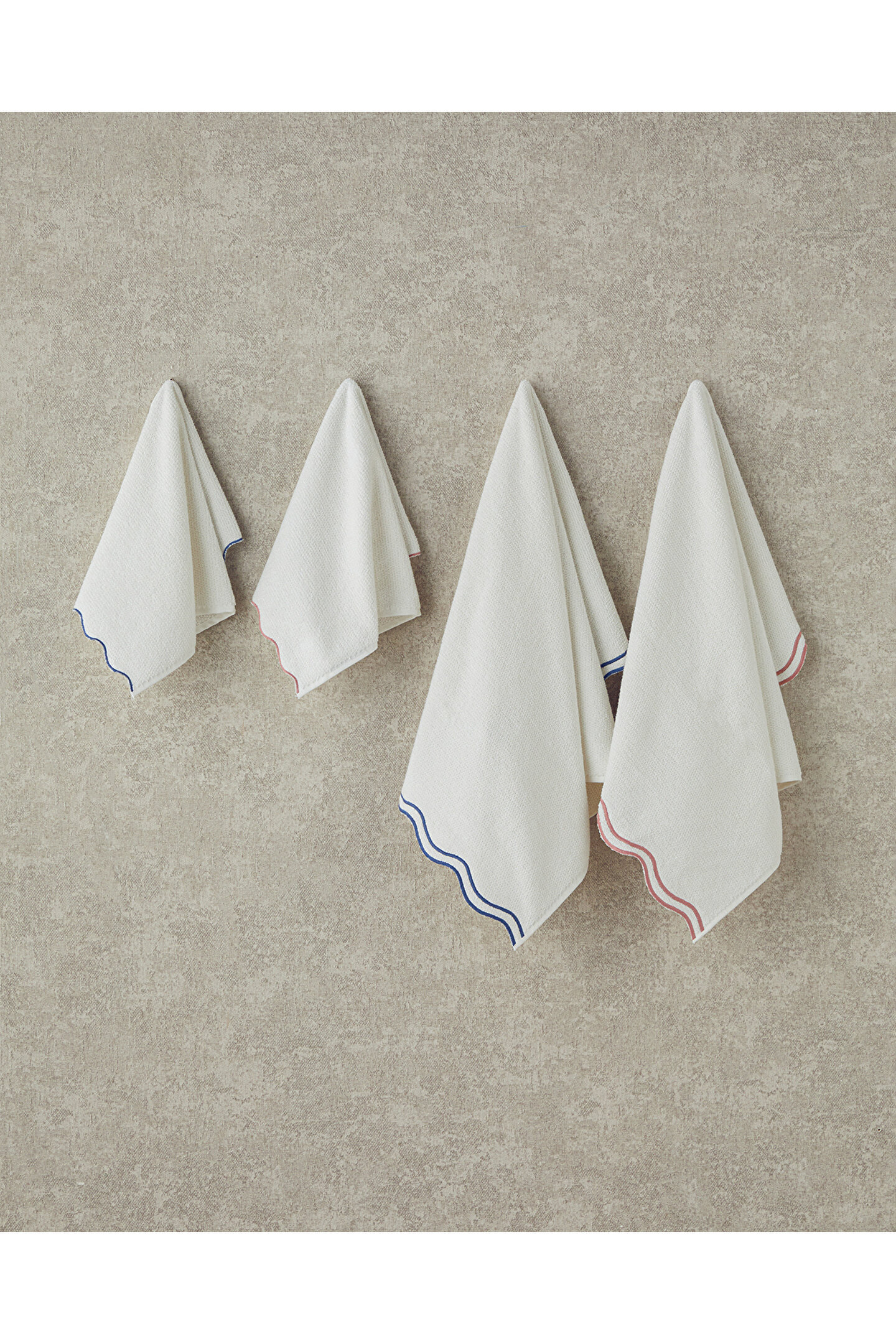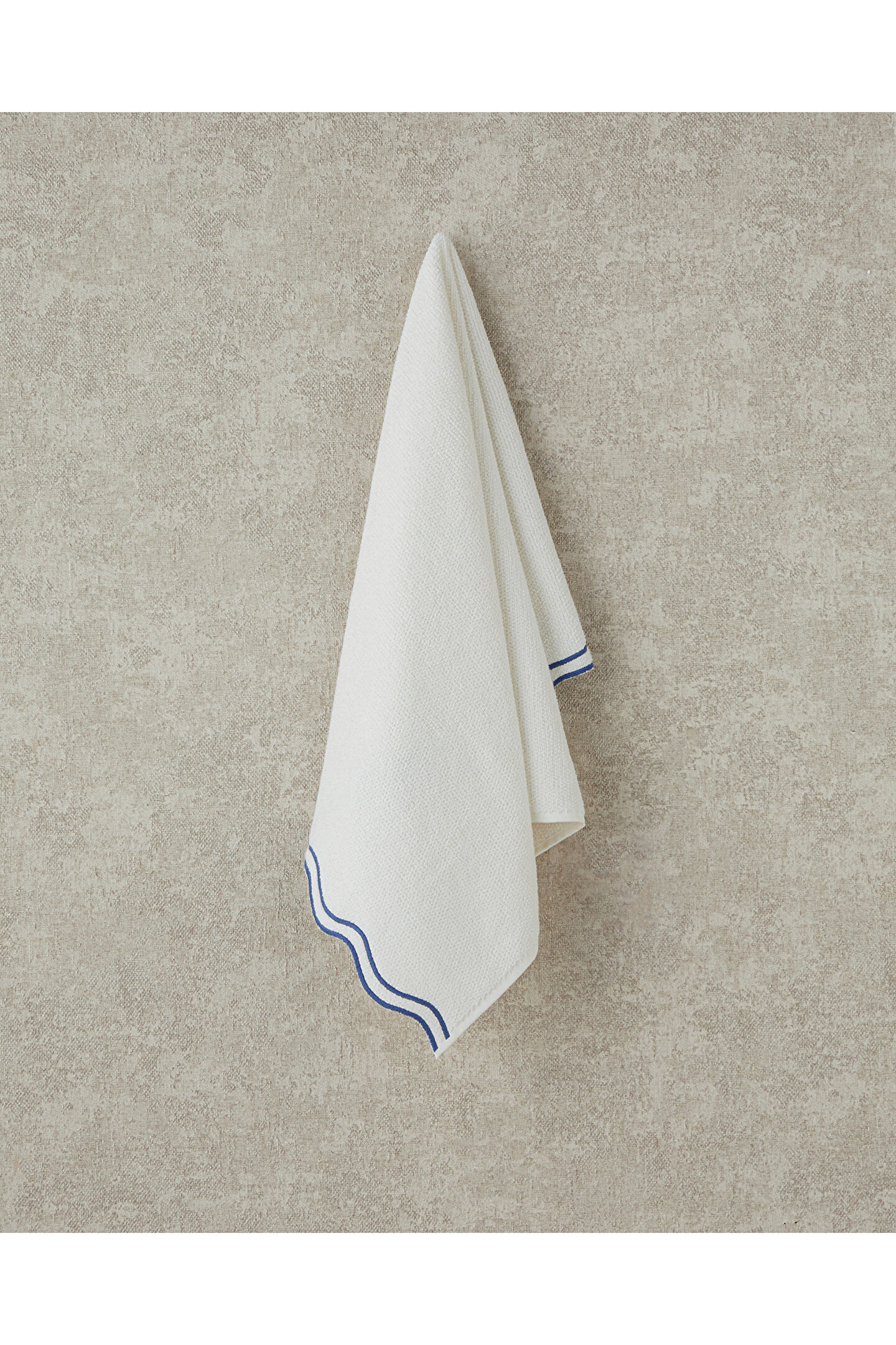 English Home Retro Waves Pamuklu Nakışlı Yüz Havlusu Ekru - Mavi