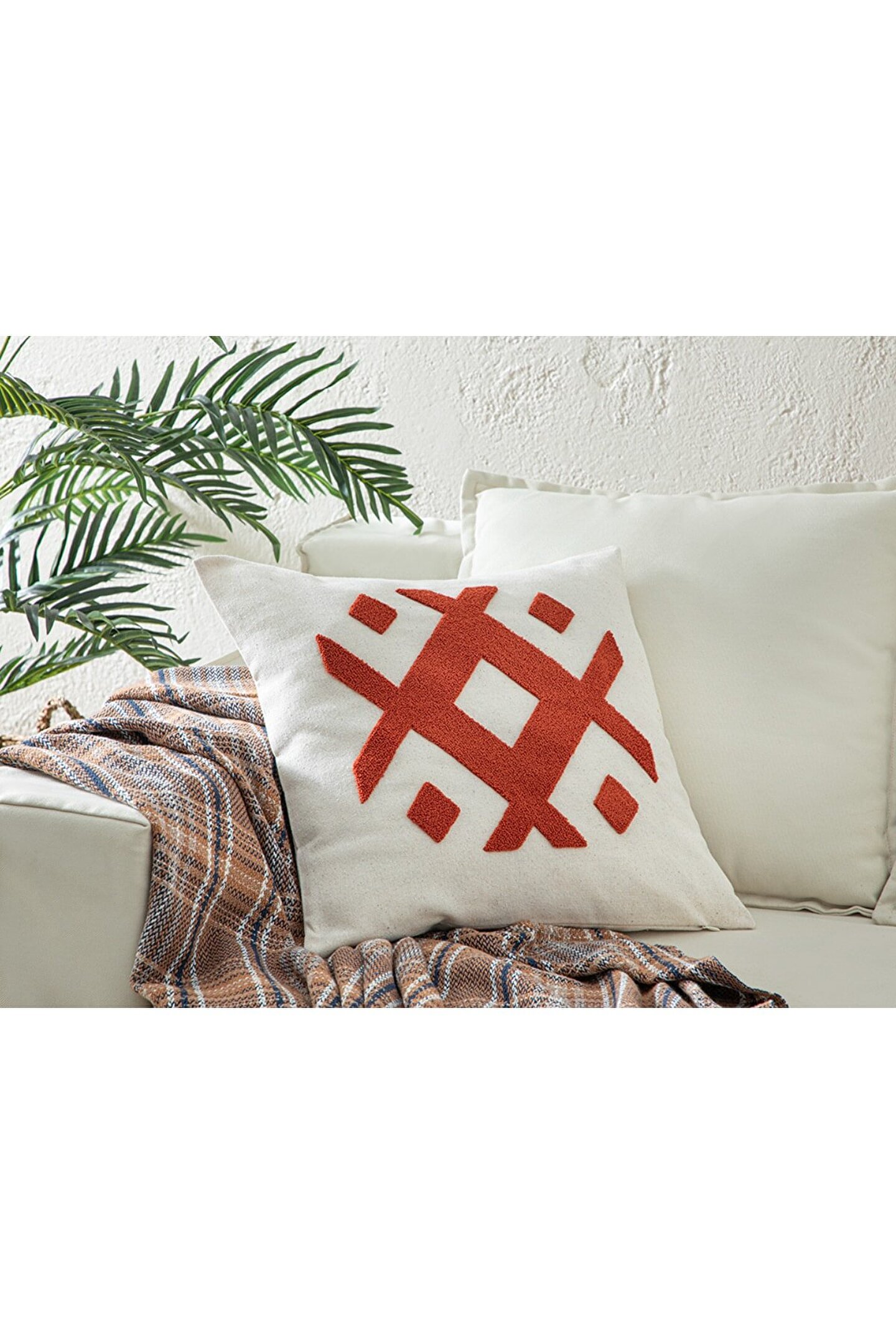 Roche Punch Nakışlı Kırlent Kılıfı 45x45 Cm Naturel